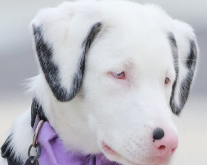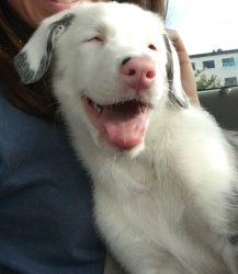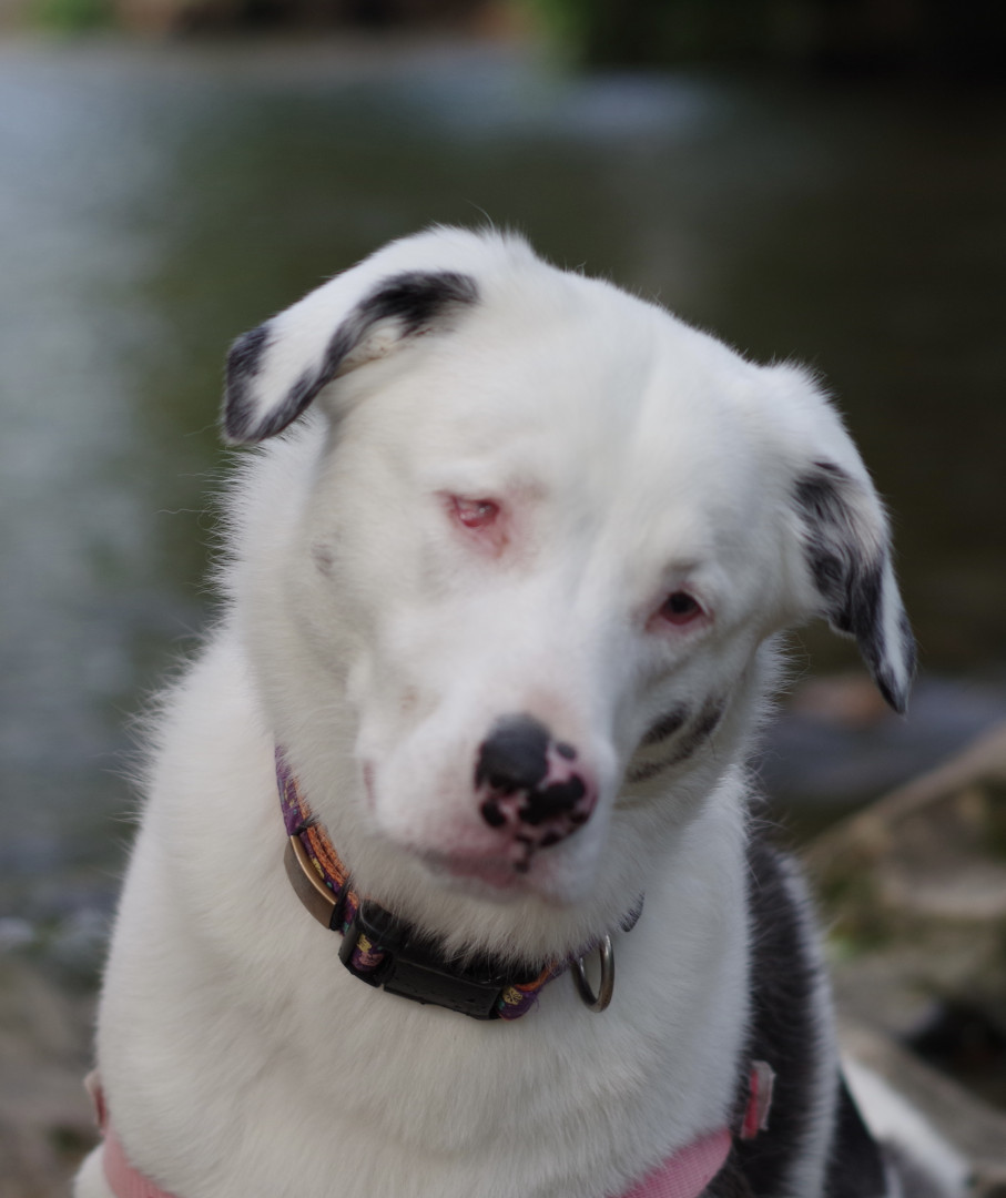 Double Merle that was born blind and deaf. She was rescued from a deep crevice and has a children’s book. #toffeesgreatrescue