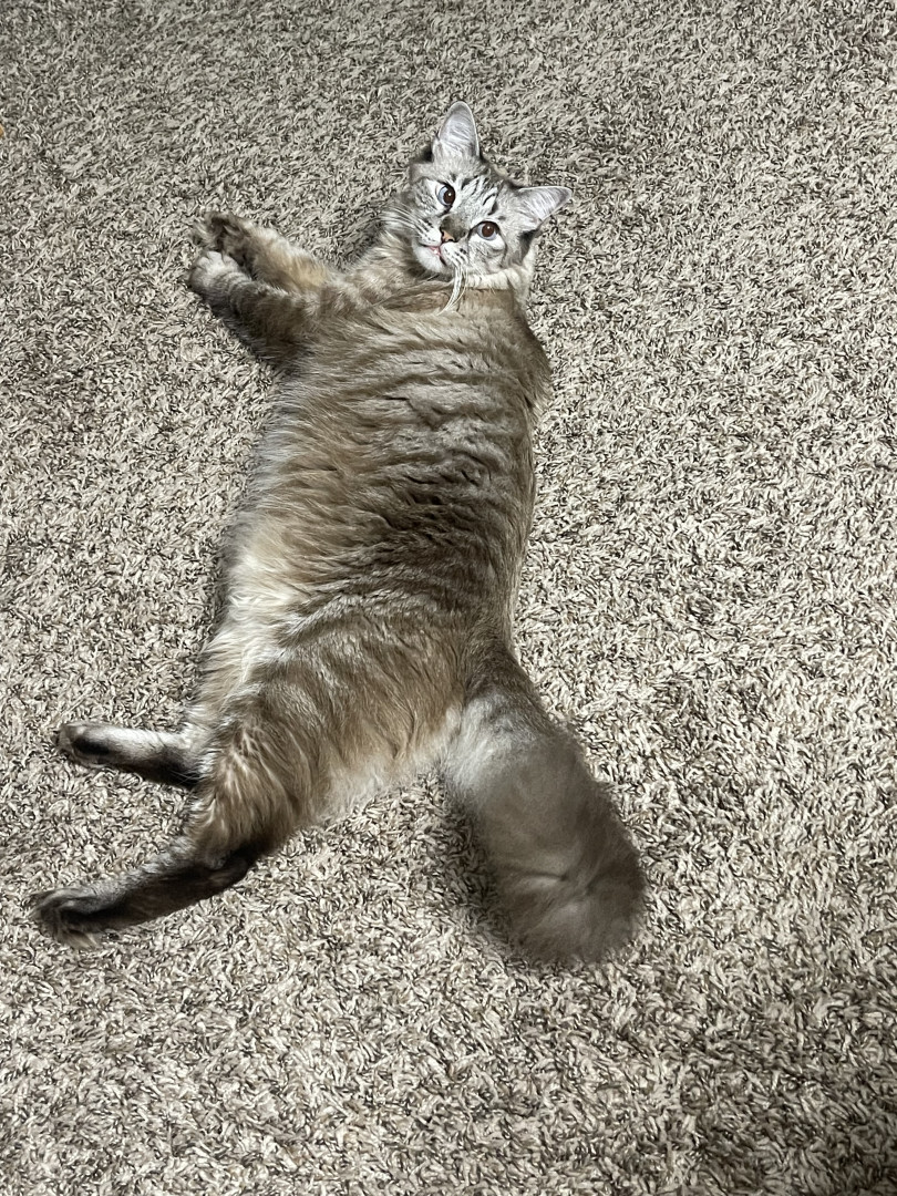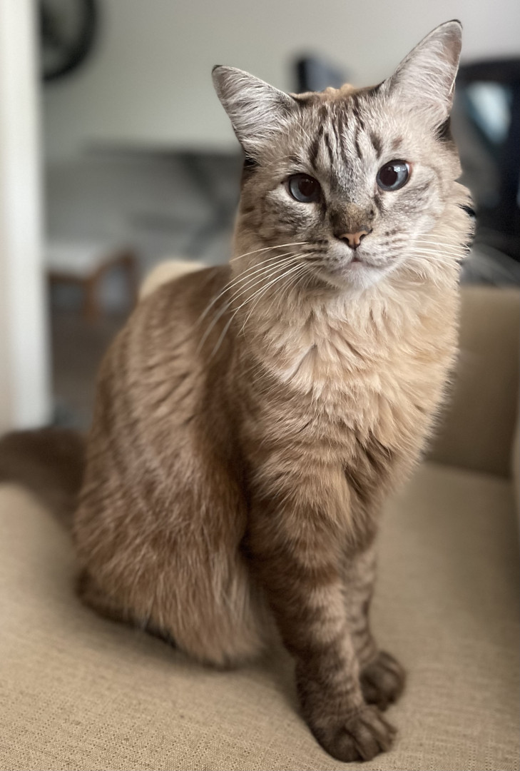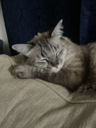 Tokyo is very sweet and friendly, especially with kids. He loves cuddling, sleeping on my tummy, sleeping together, and playing with other cats.