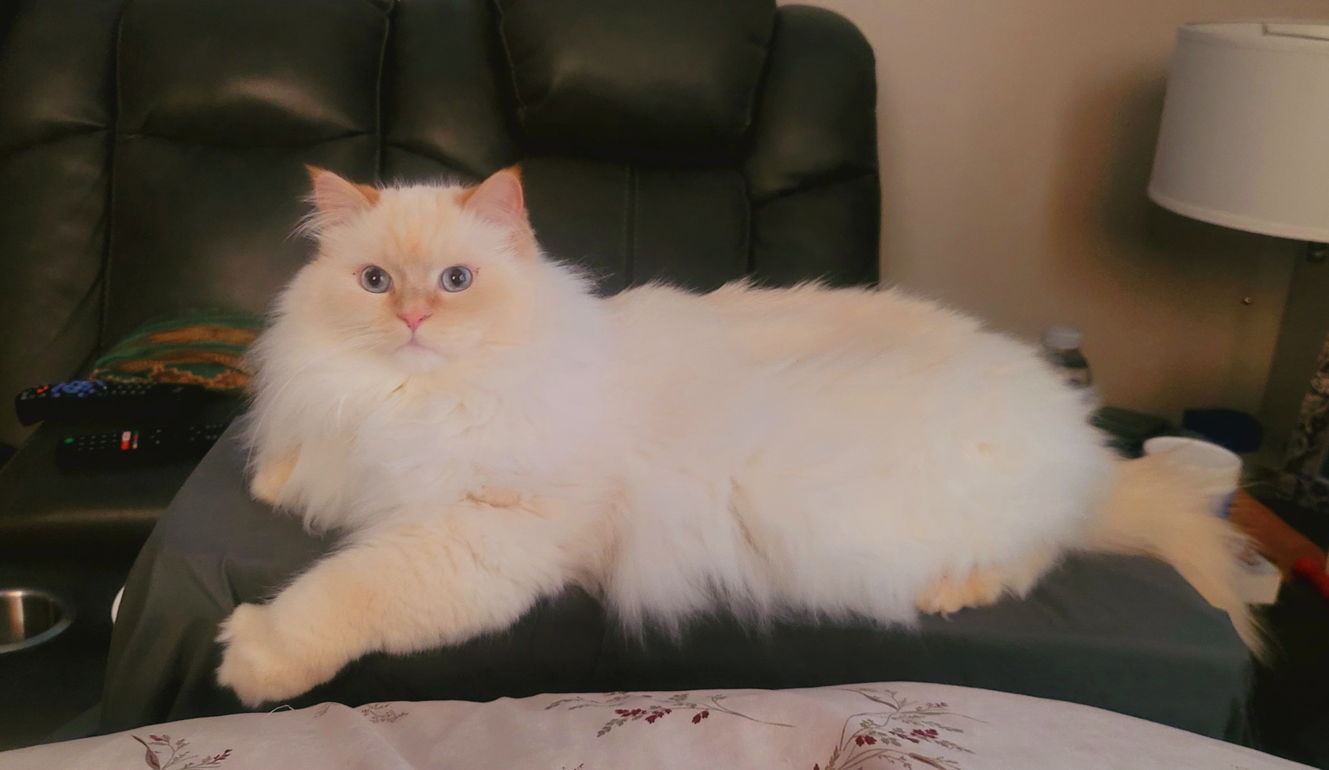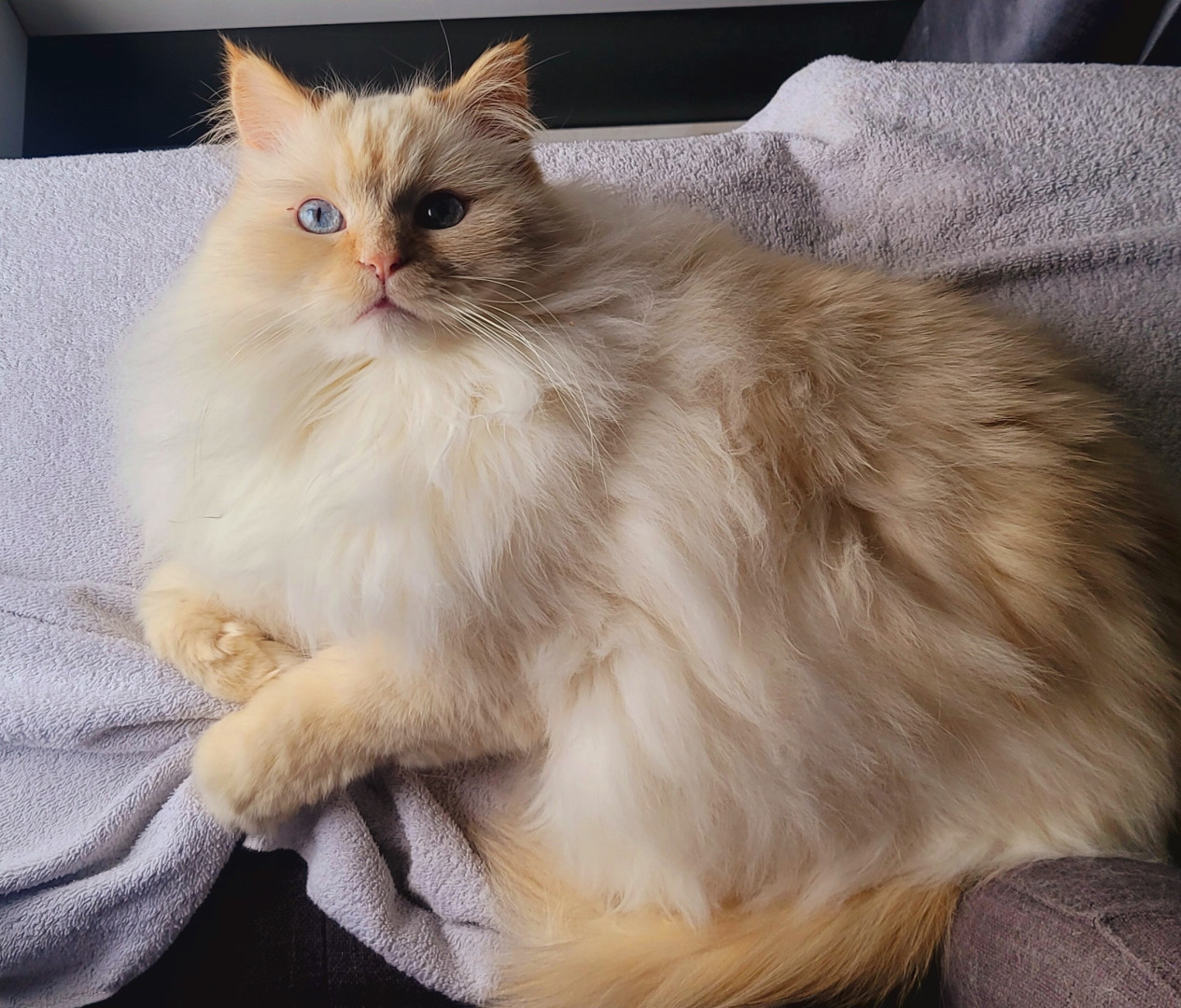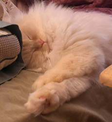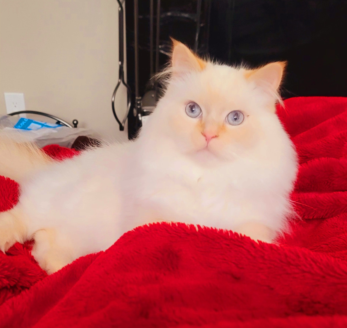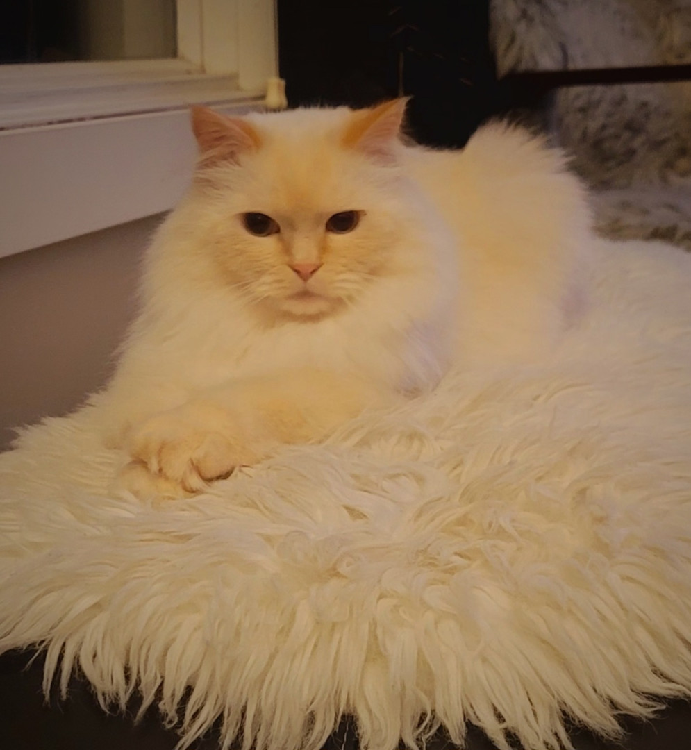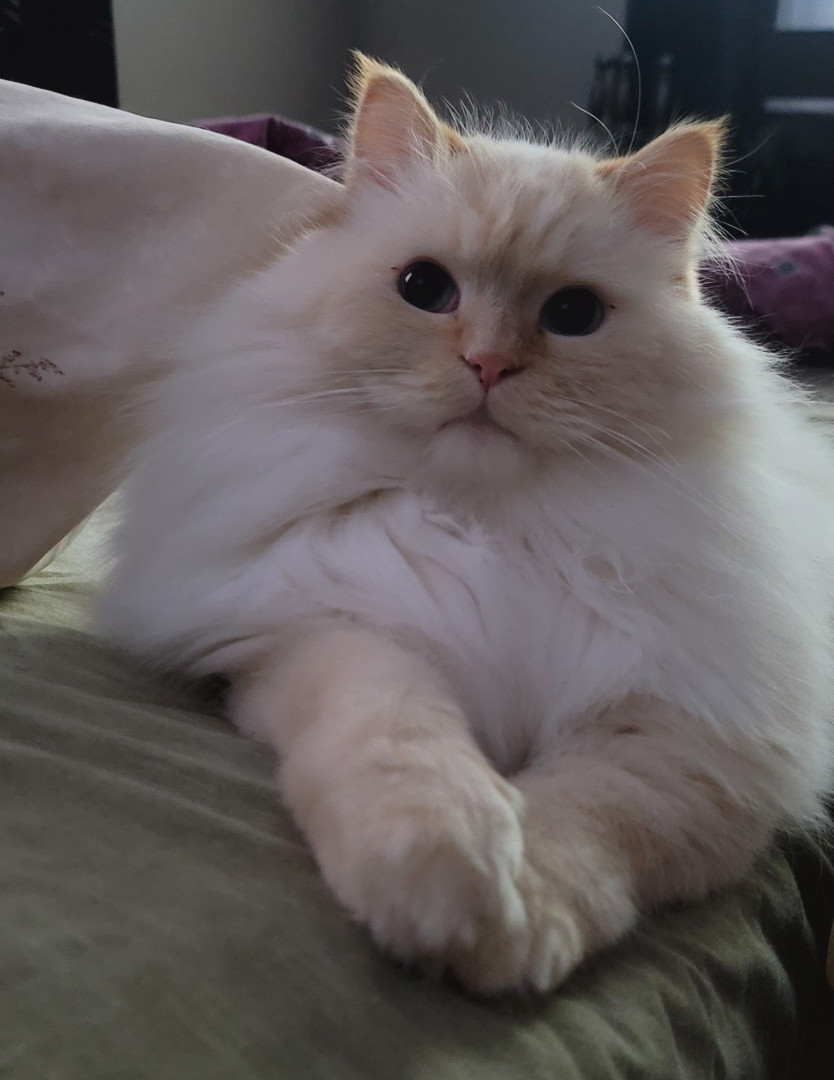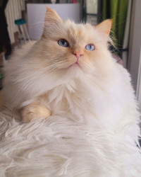 Tolkien is a 4yr doll face Himalayan. He is such a funny cuddly kitty , loves his daily brushes and of course his treats.
