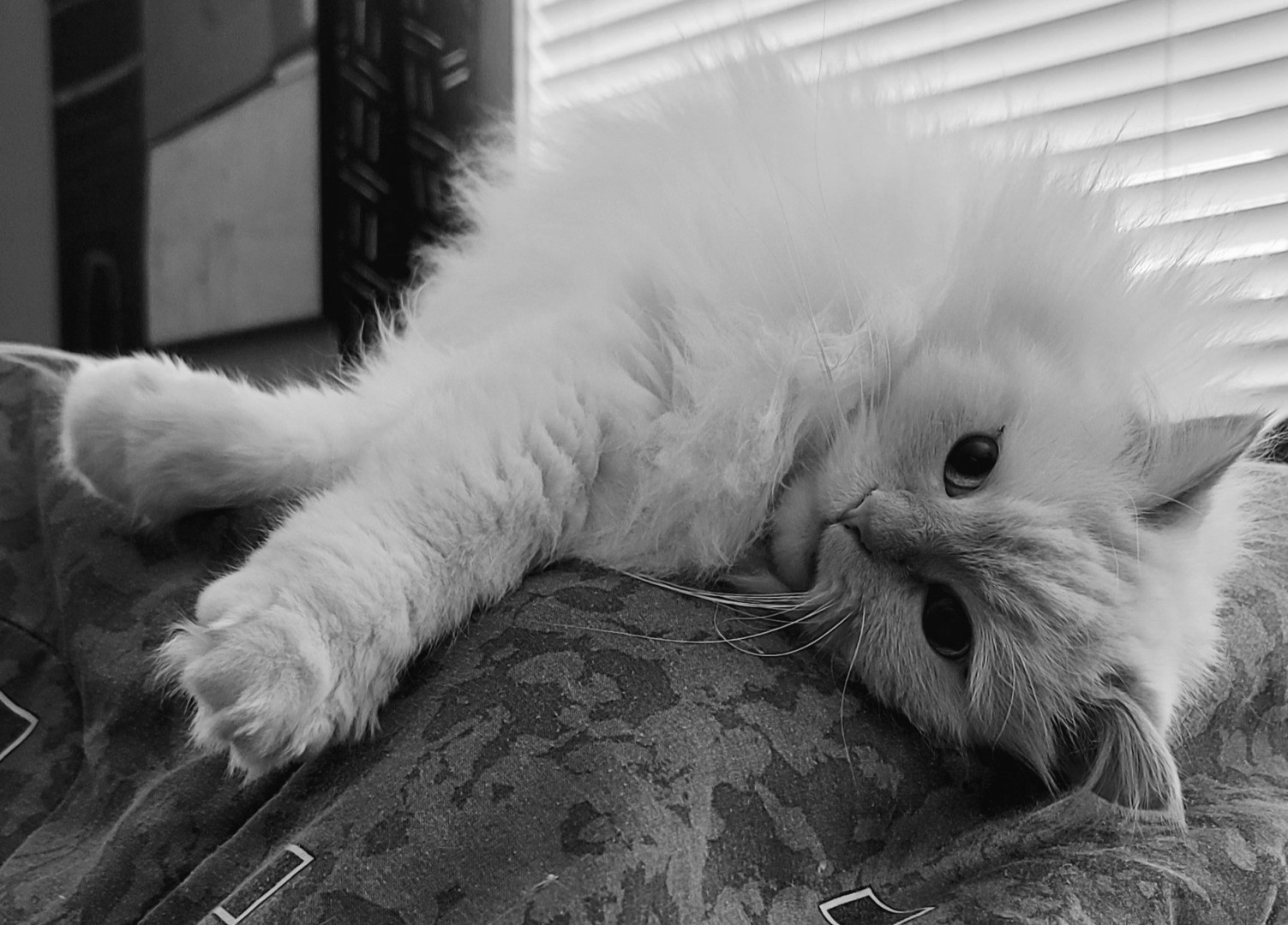 The most unique quality is that Tolkien taps the blanket so he can share the blankets with me and protects me while recover from my knee surgery . If not there he sits above my head on the couch guarding me. He is a pretty incredible cool kitty.