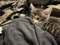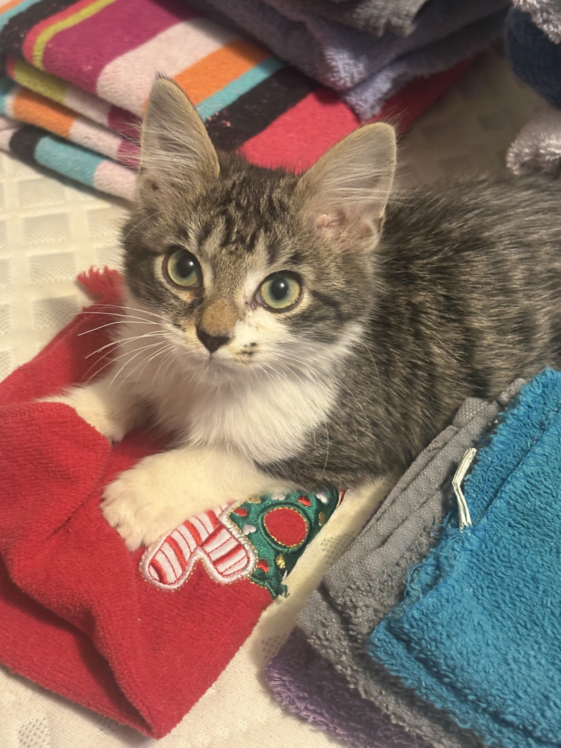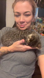Tom came to me from a friend who was at a laundromat and found him abandoned in a laundry cart inside the laundromat. He was very skinny, you could feel every bone in his body and he had a horrible smell of infection coming from him. I bottle fed him and nursed him back to health and you would never know that he was so near death by looking at him today. This poor guy has had a traumatic start to his little life but he will never have to go through that again. He is a true blessing.