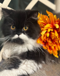 Es un gato muy tierno, tiene grandes ojos y una cola muy peluda, lo que hace que se vea hermoso.