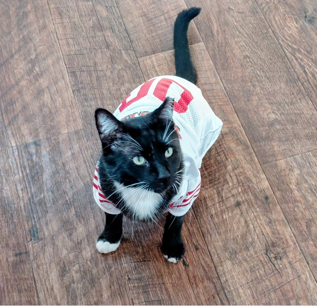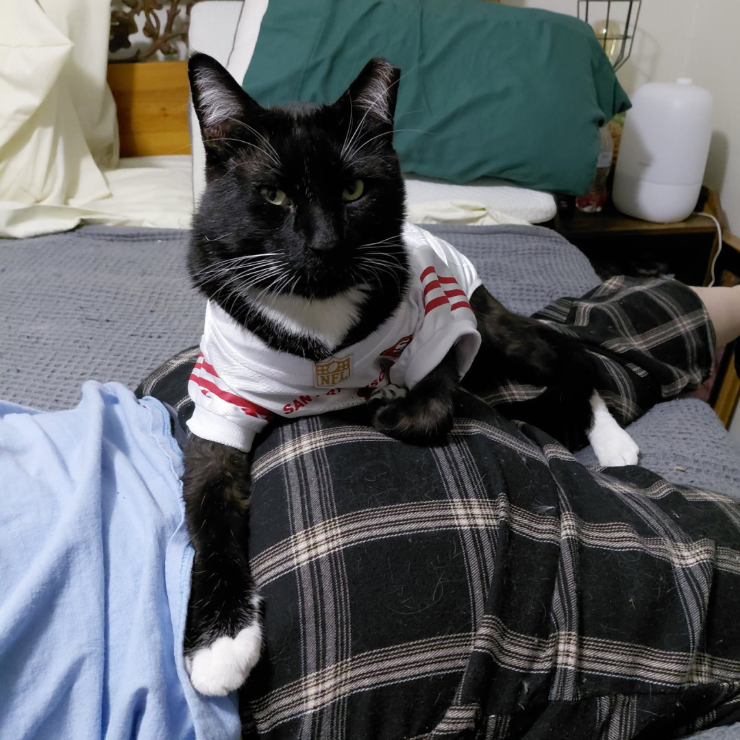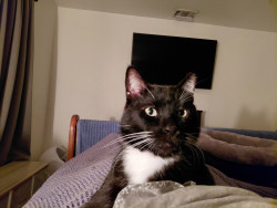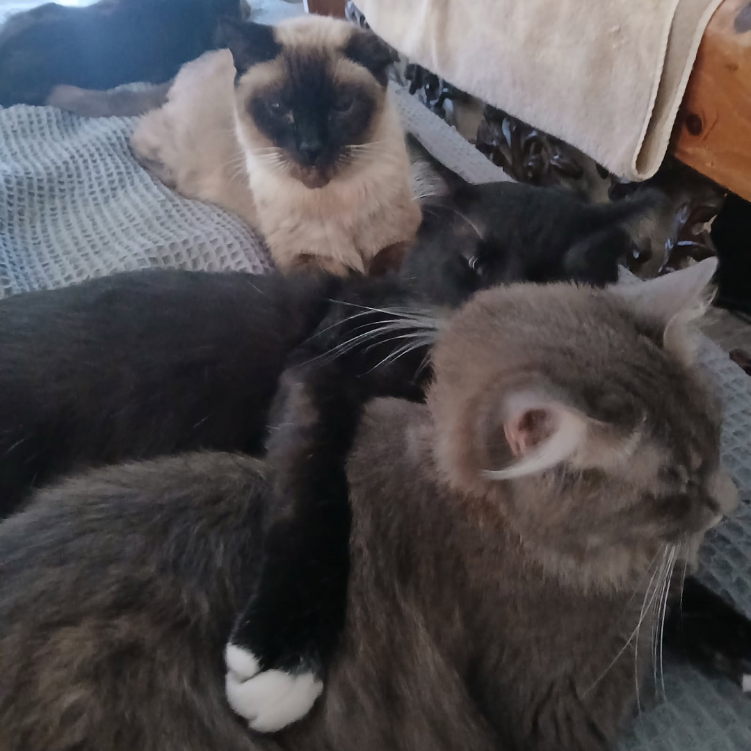 Tom is a feral we took in our house a year ago last winter. He has been a major part in our lives and loves our other four cats.