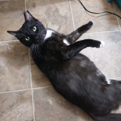 Learn MoreHe loves to play with pony tail hair ties. For treats, he is a foodie so anything he can put in his mouth. He eats everything like it's his last meal since he's been on the streets for so long.