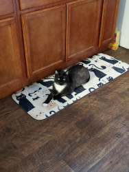 At some point in his life, he broke his leg, which has never healed properly. His leg stays stiff all the time, but when he runs through our wooden floors he sounds like a trotting horse.