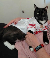Tom lived on the streets for approximately seven years, always getting into fights and was very under nourished when we brought him in. Now he's our social butterfly and everyone who visits gets greeted by Tom first and he has become everyones favorite.