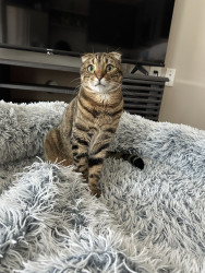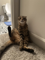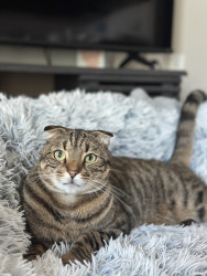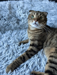 He has a sweet, calm personality with a playful side. His expressive eyes and unique look make him naturally photogenic, and he takes great