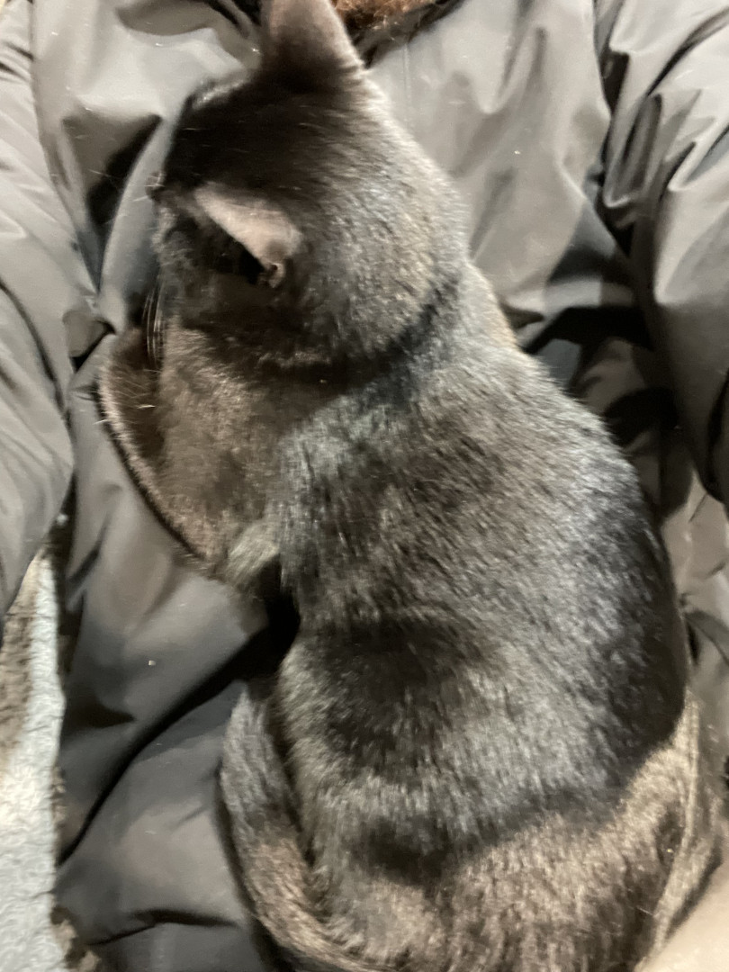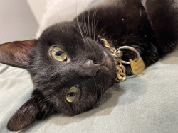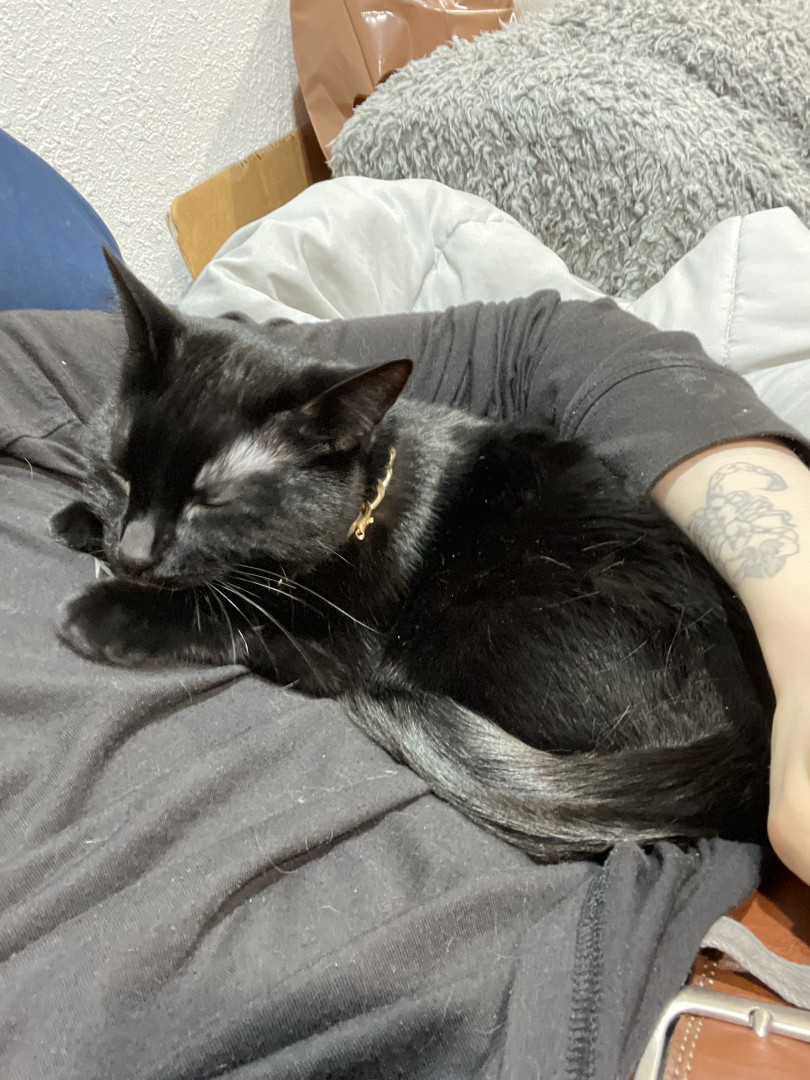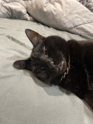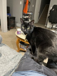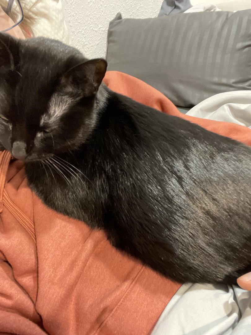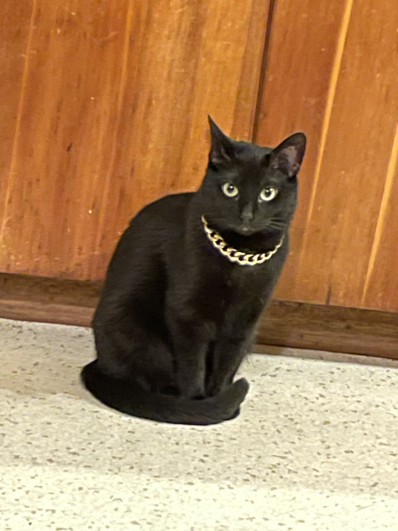 Toothless: sleek black void with emerald eyes, dramatic meows, judges you from the highest shelf. A tiny dragon in cat form.