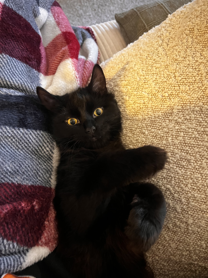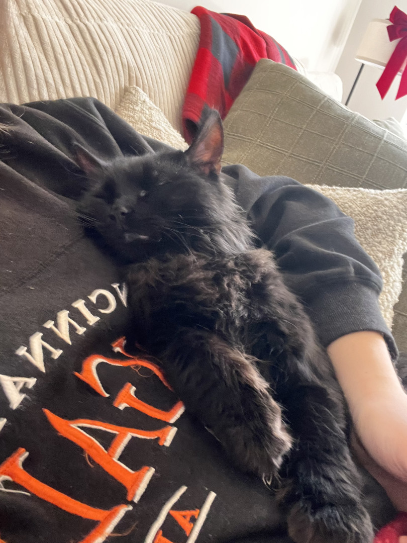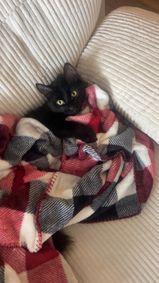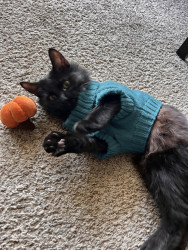 Toothless is the most clingy kitten in the world. He loves talking, playing, and sleeping!! He plays fetch and knows how to sit.