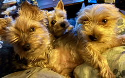 Well, look at them. In the picture all 3 were competing to sit on daddy’s lap. They won! Yorkies are a different type of dog. They don’t just sit around waiting for for what they want. My babies let us know what they want and that they wanted it yesterday! We have to be on our toes with these 3 and we wouldn’t have it any other way.