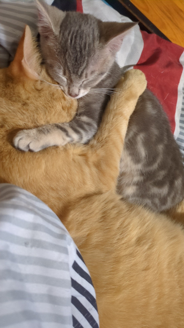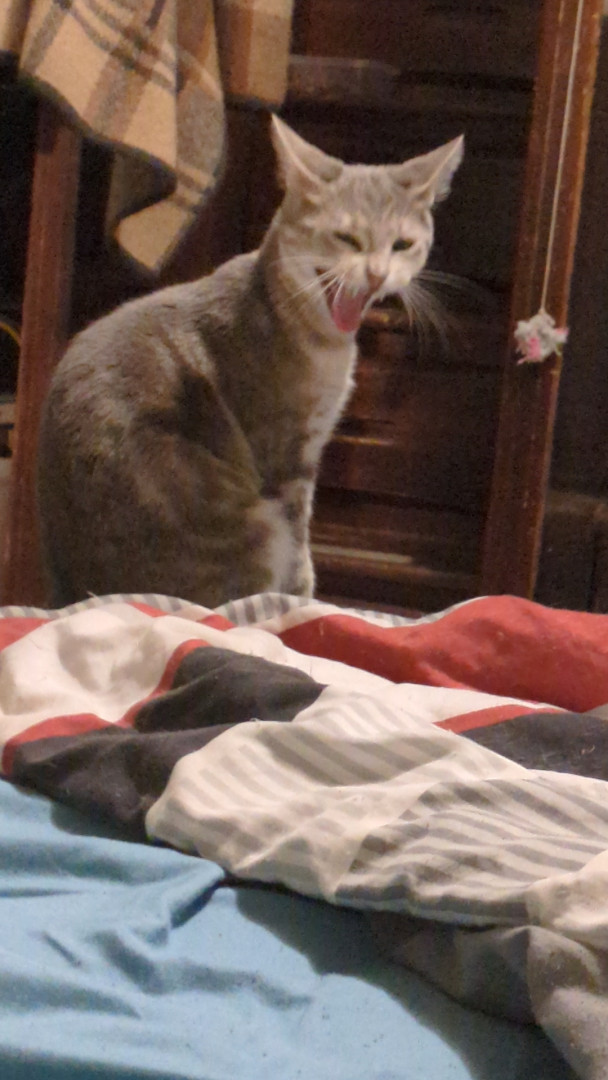 She's our little wild child, she loves to nibble your chin and meows for just about everything. Toots is a little sick but still the bos