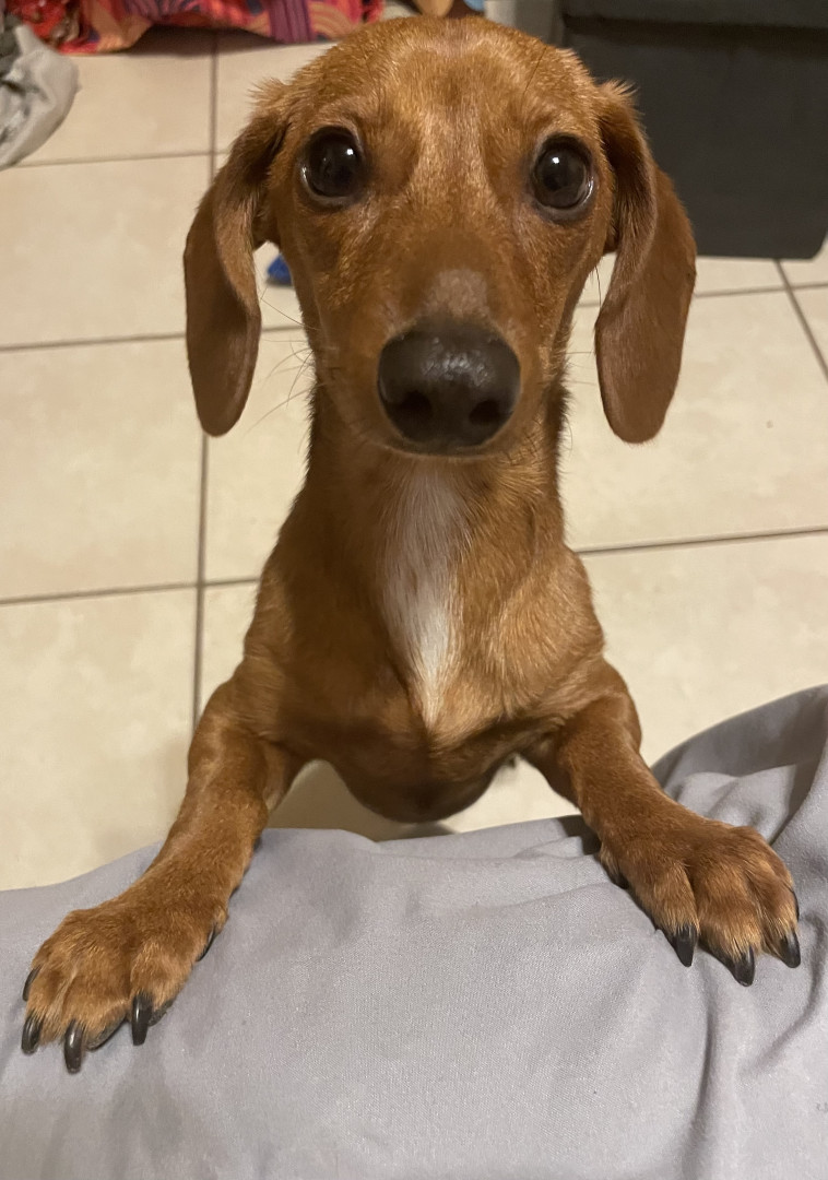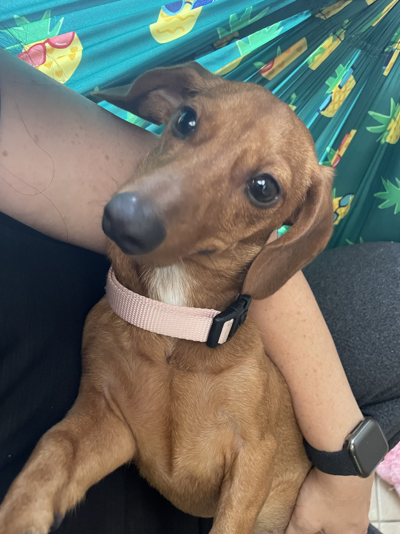 Tootsie is the sweetest and most affectionate miniature dachshund. She has a unique white patch under her chin and she is absolutely adorable. She is so playful and fun.