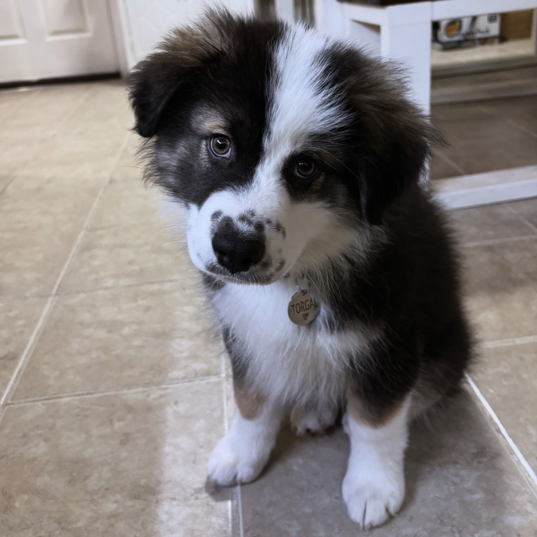 Torgal is an 11 week old rescue pup from Mississippi. He’s so sweet and calm and he’s an Australian shepherd and Dutch shepherd mix.