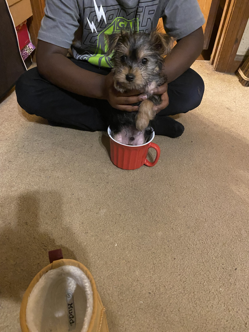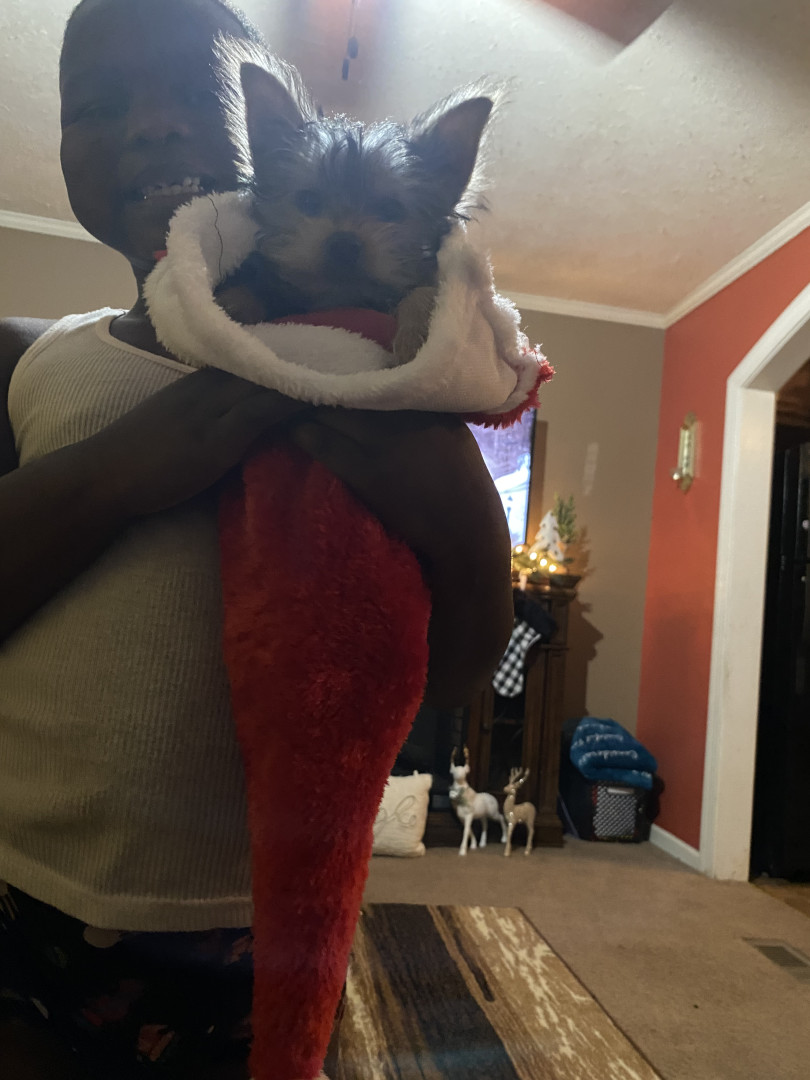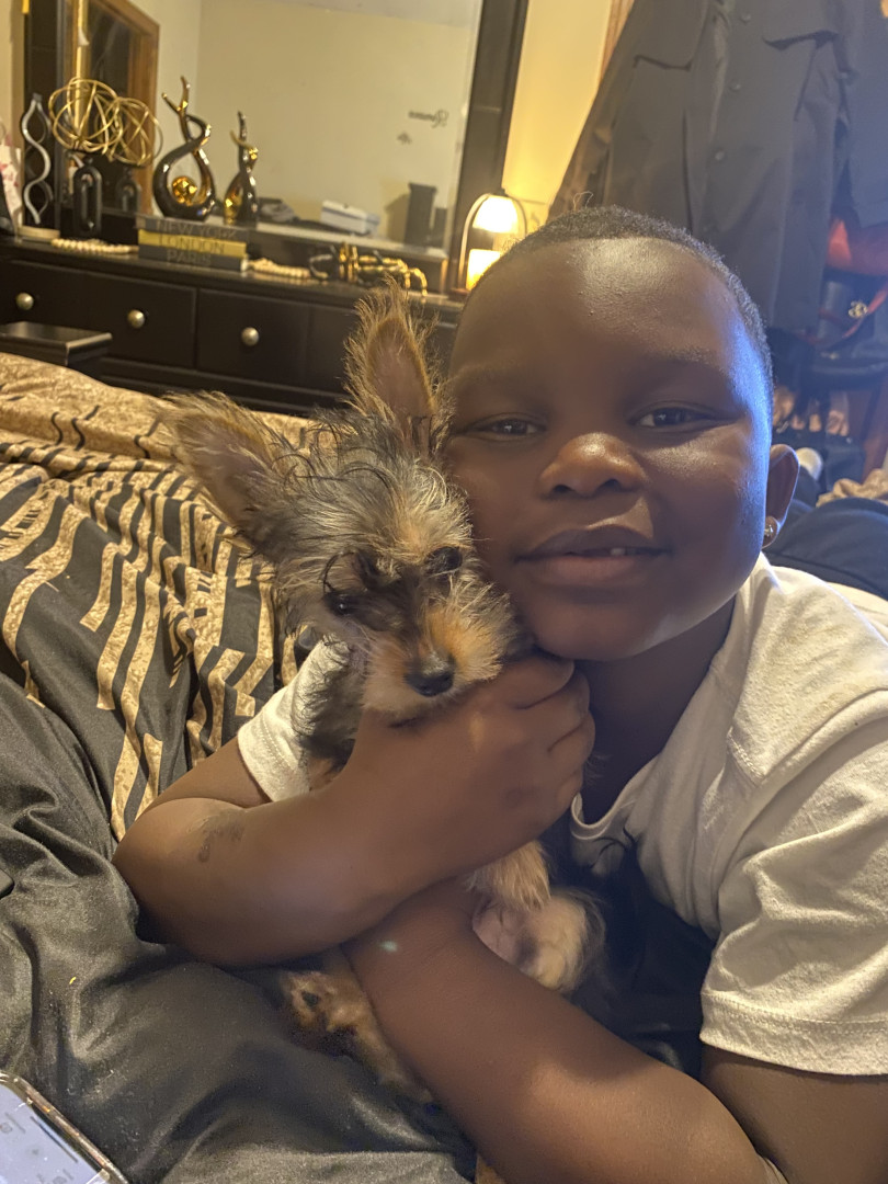 Very sweet and spoiled but fiesty! I call him my lil pit bull! It’s never a dull day with him! He loves to pull socks off and untie shoes!