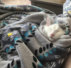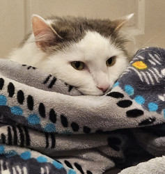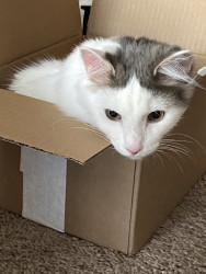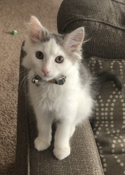 He is a shy, but friendly cat. Trevor will lay with you one minute, and then run around the house the next. He is an adorable heart stealer.