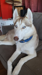 Trey is our Male Husky ..Hes a rescue but i think he rescued us!! When we cook our food and look everywhere Treys hair is there !!