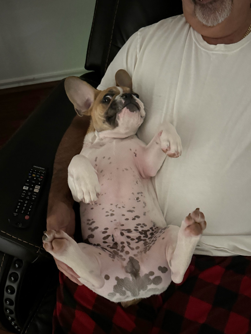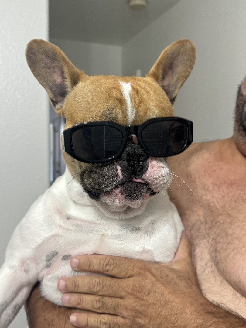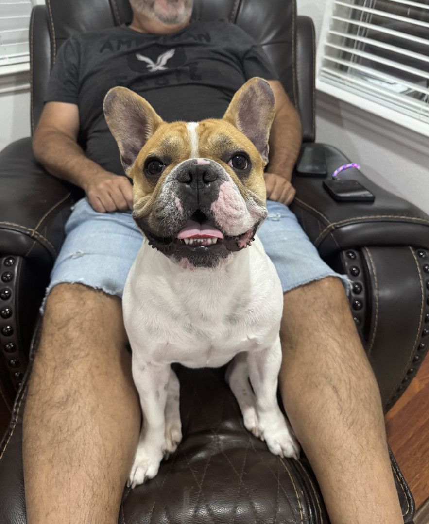 Tiny, snorty, and full of chaos, Tribillin is 2-year-old Frenchie who steals snacks, socks, and everyone’s heart.
