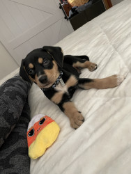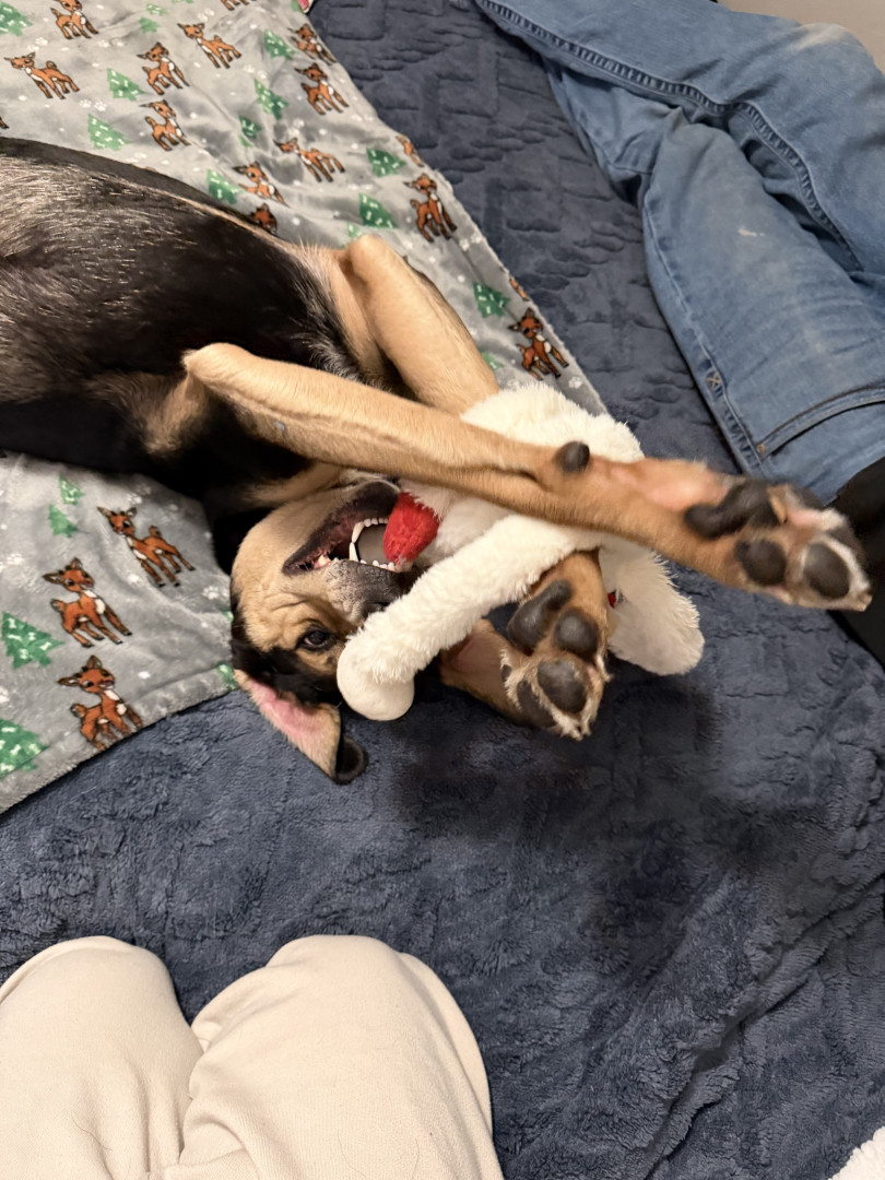 Trigger is the best dog we could've asked for. He is so sweet and loves playing outside with toys especially his lamp chop!