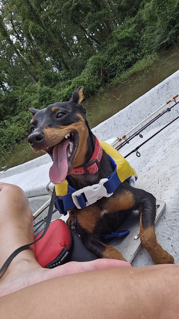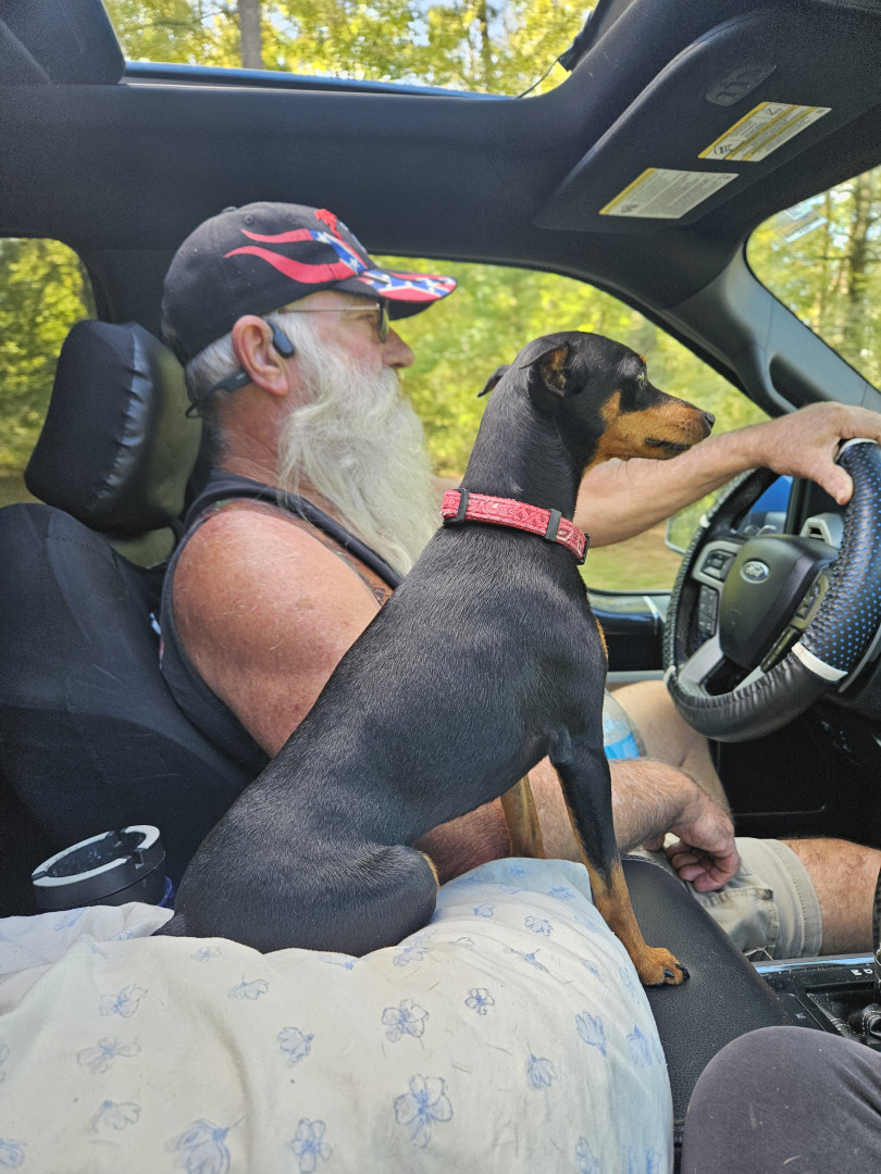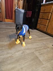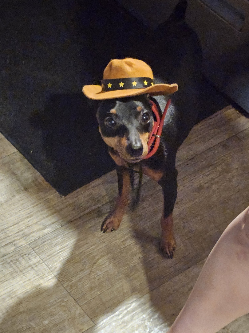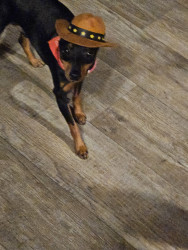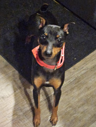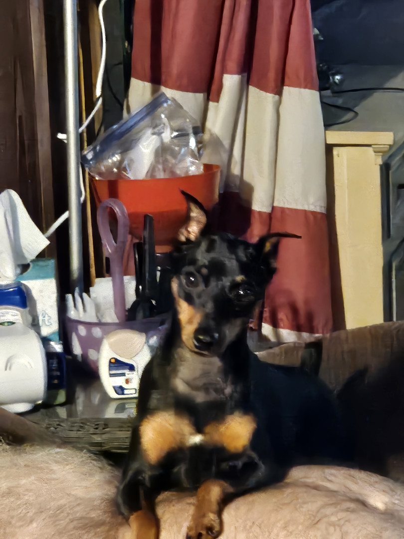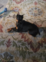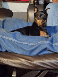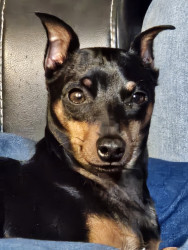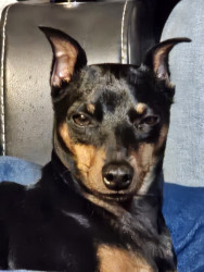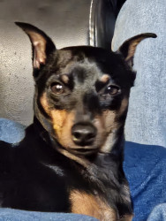 Brown an black min pin spoiled rotten to the core loves his monmy and poppa .