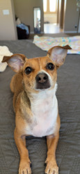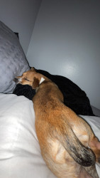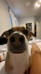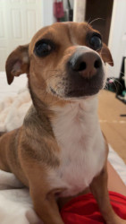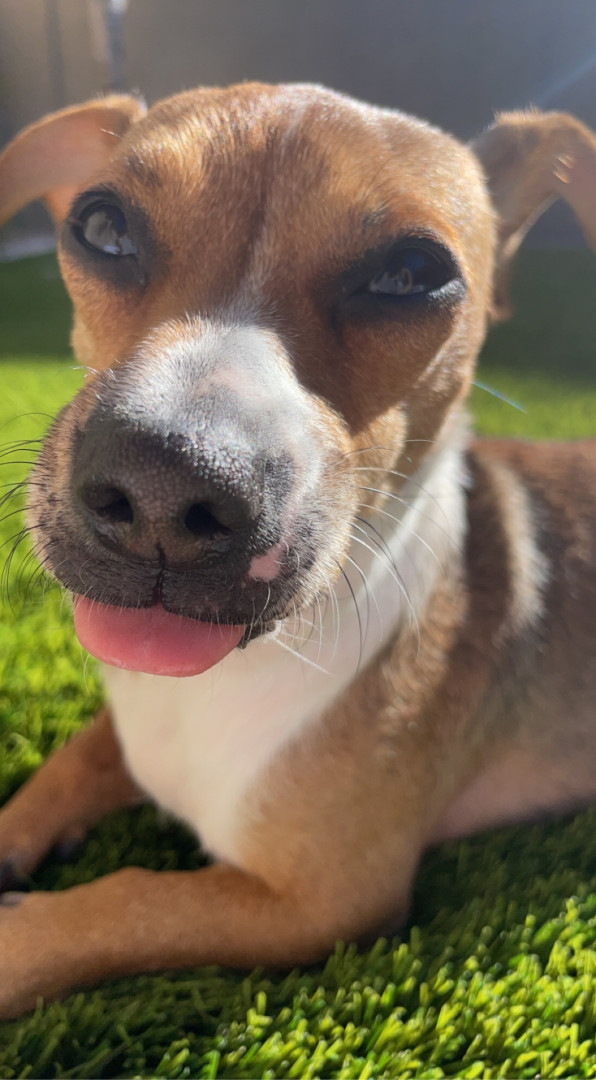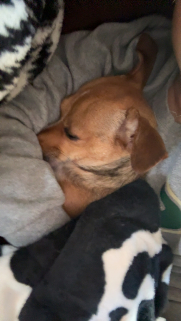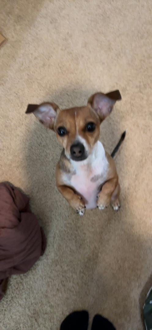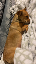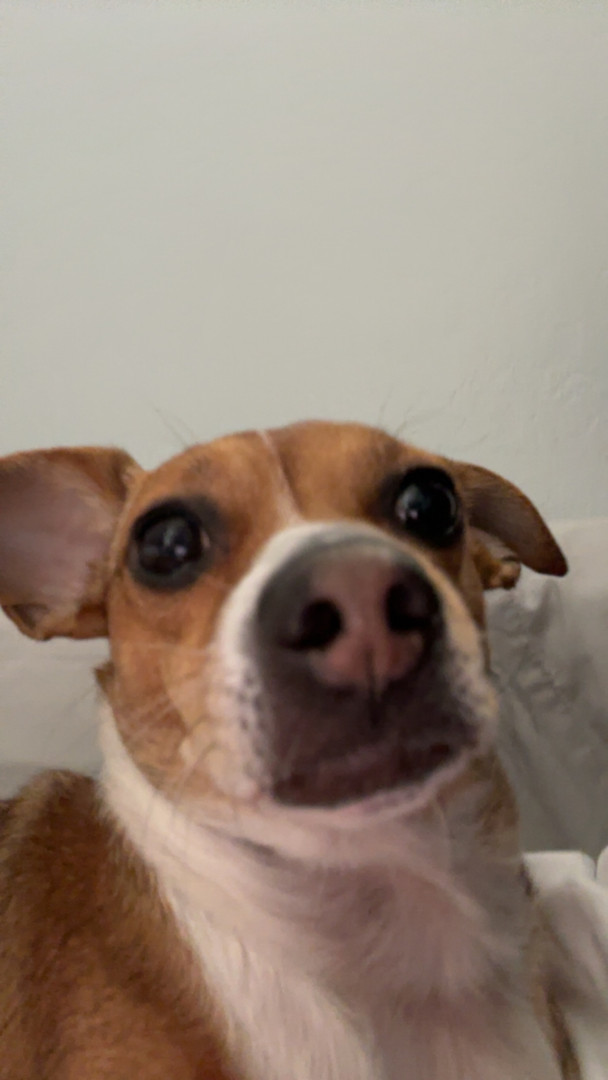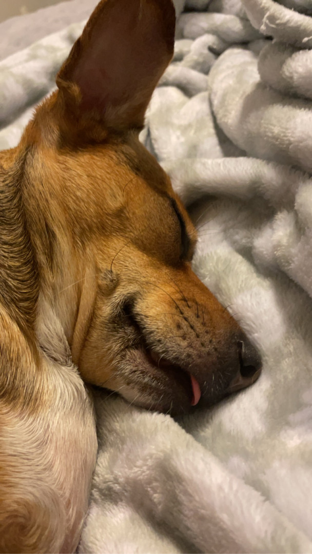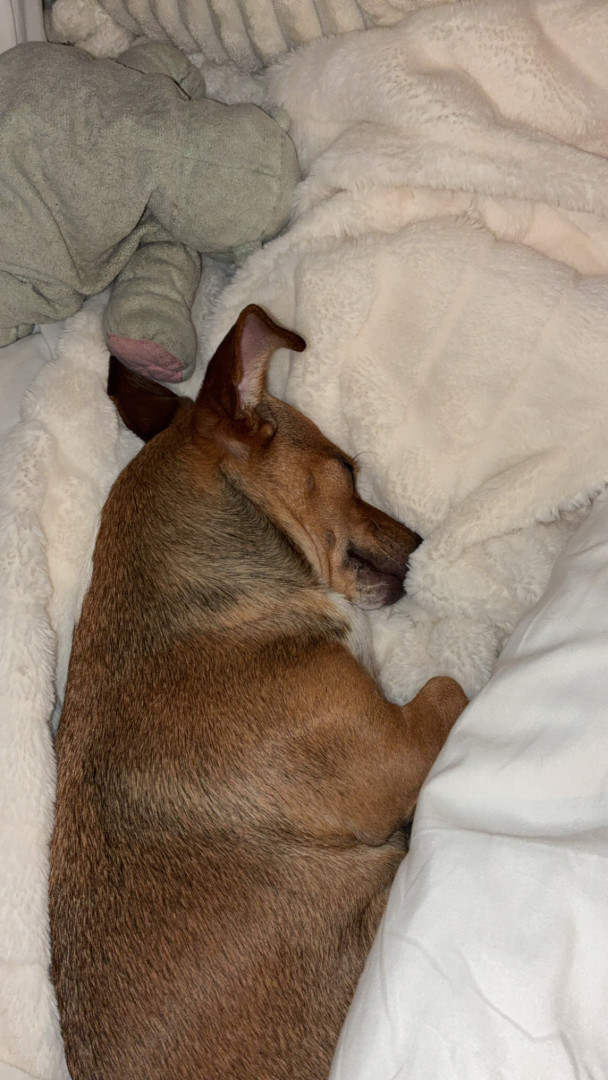 she is a rescue dog, very timid and shy but the sweetest baby. Her favorite this is to snuggle and nap and chase bunnies on her walks