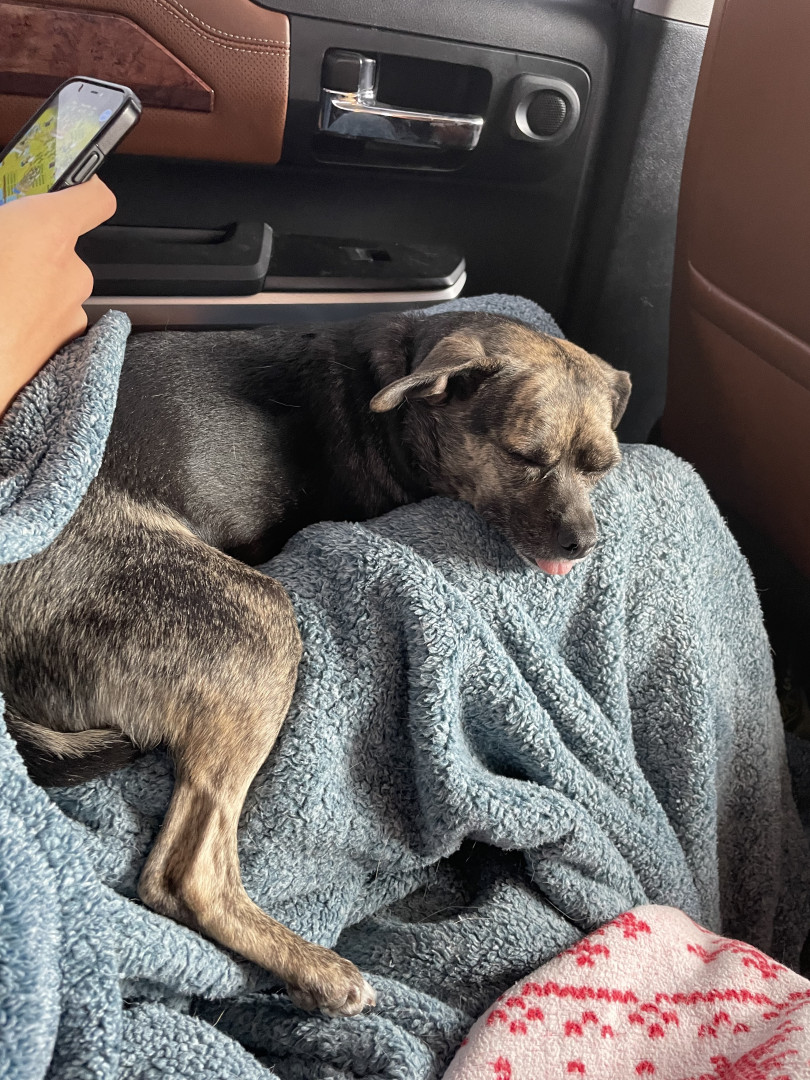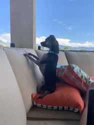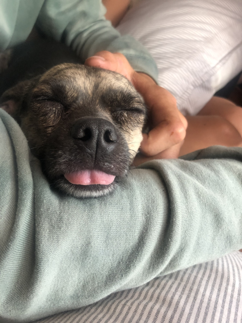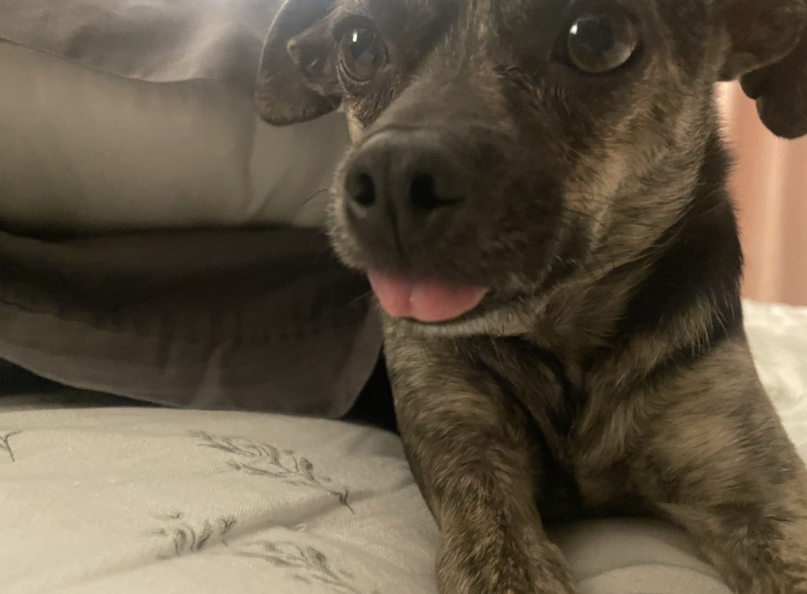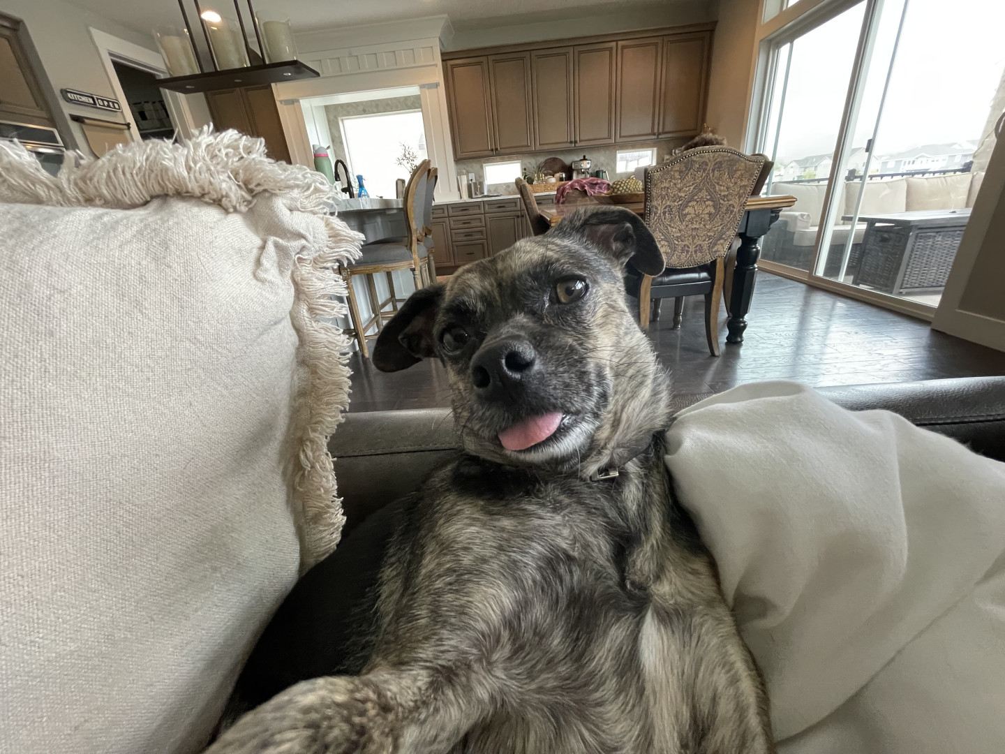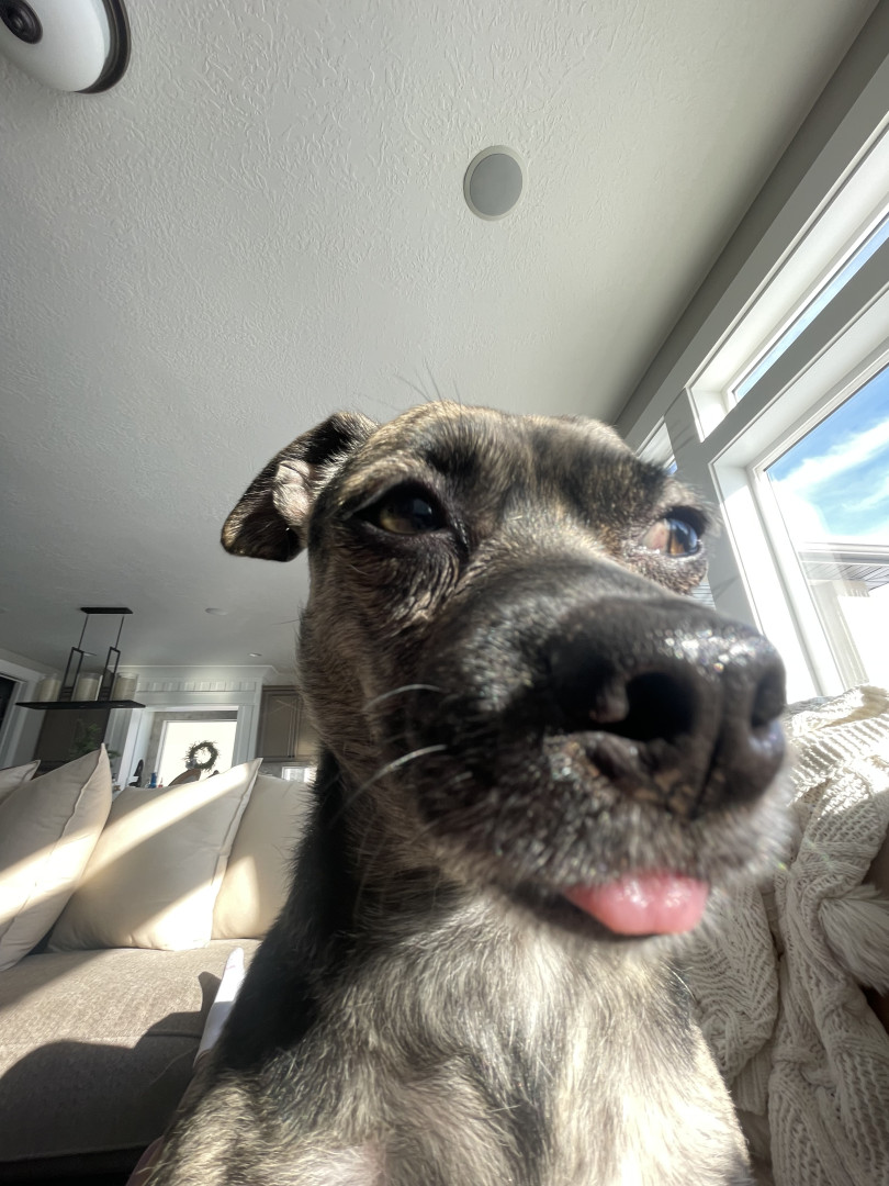 Triumph is a very loving and silly guy. He spends his days sleeping and barking at everything outside. He loves to stick his tongue out.