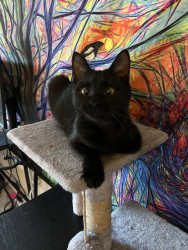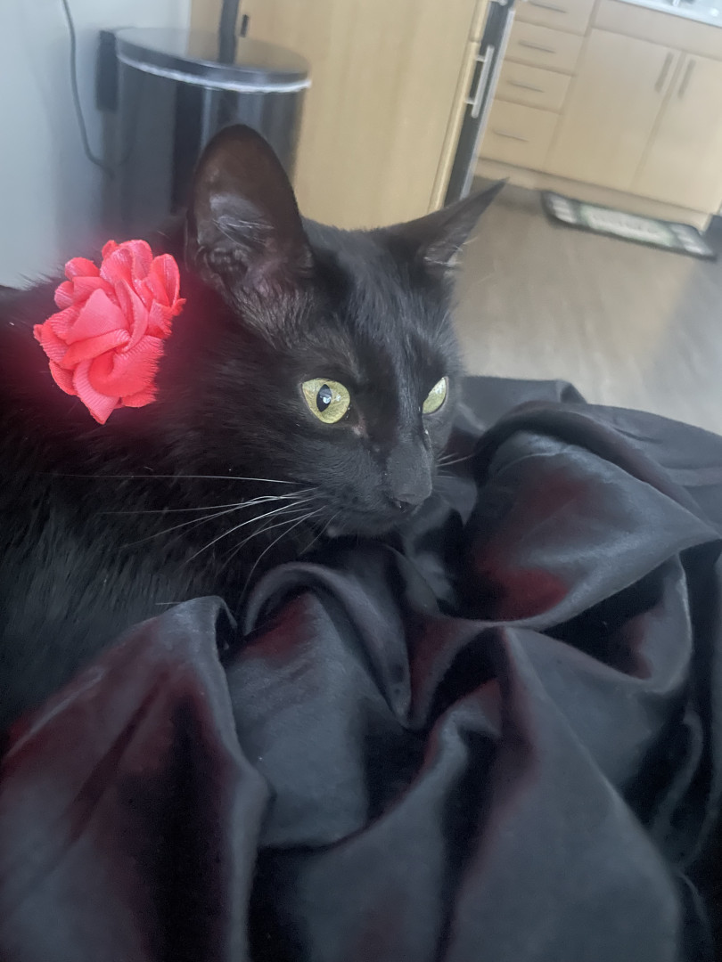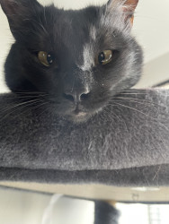 She's a bit crossed eyed, which is unusual for a black cat.