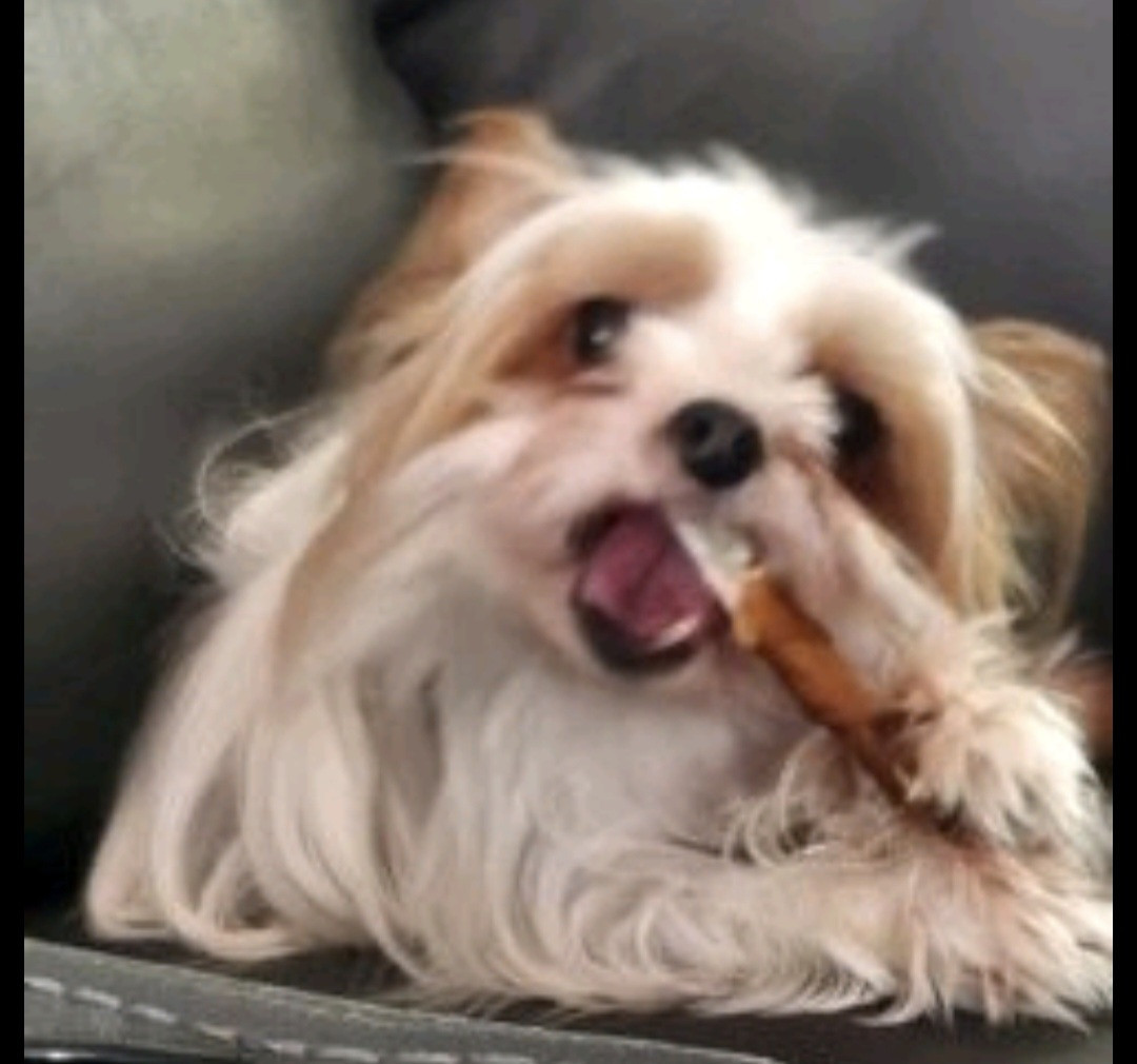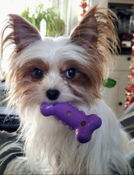 Her favorite toy is the stuffed monkey, and her favorite treats is the chicken sticks.