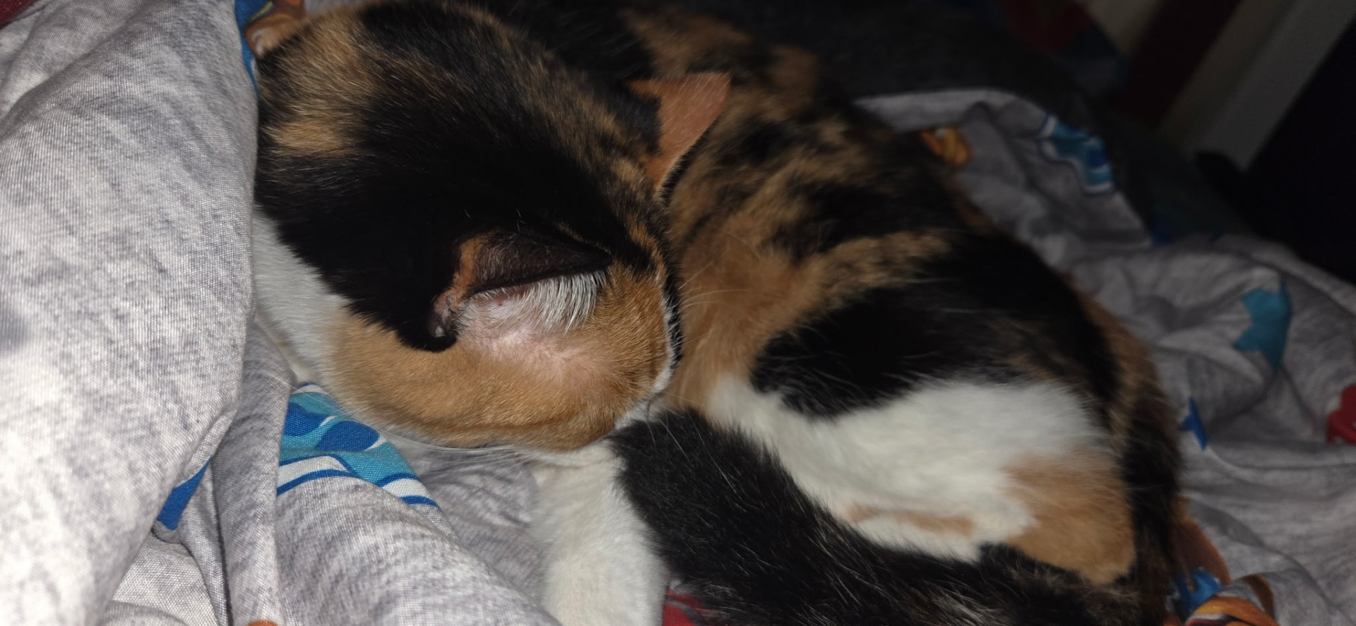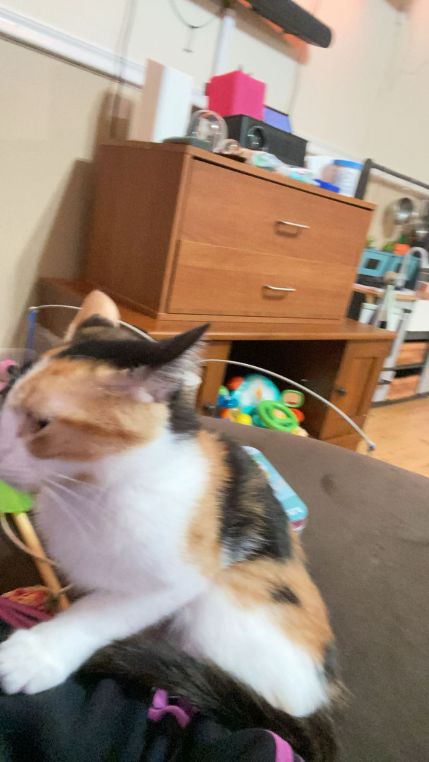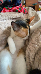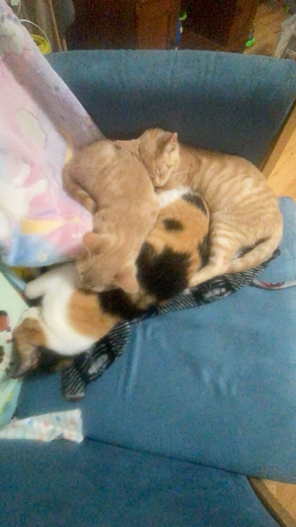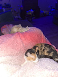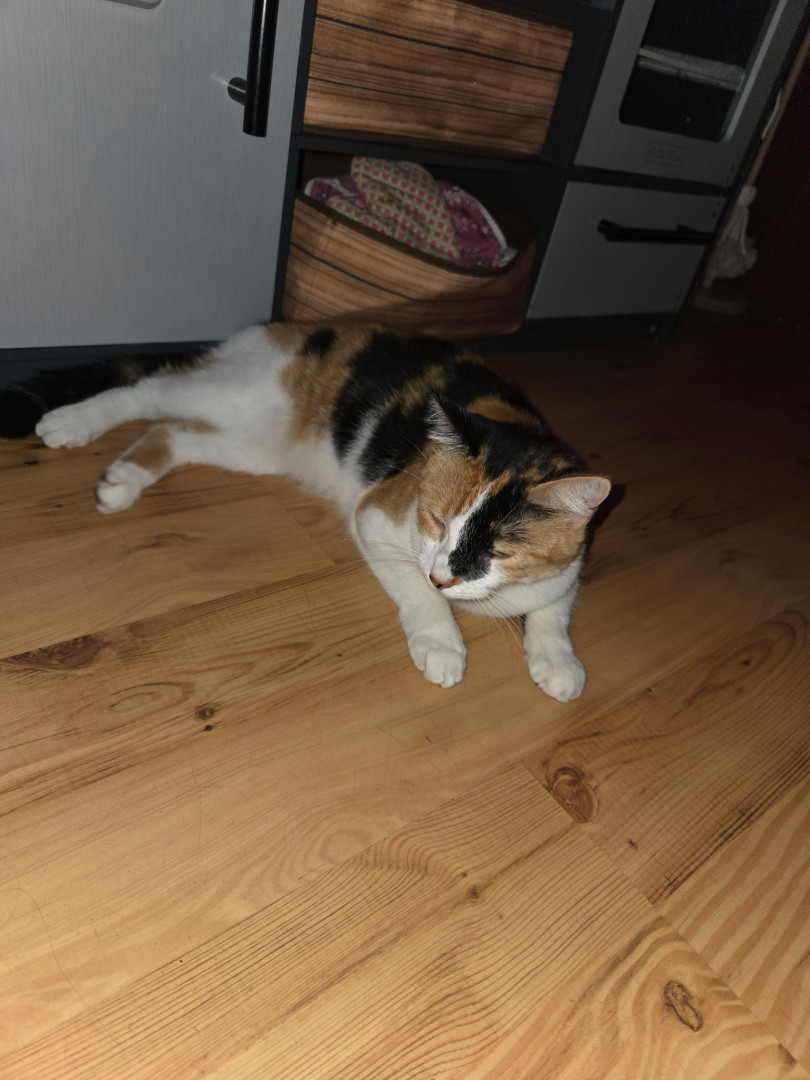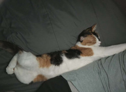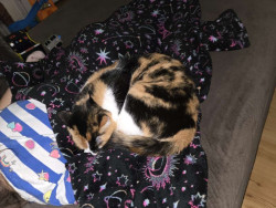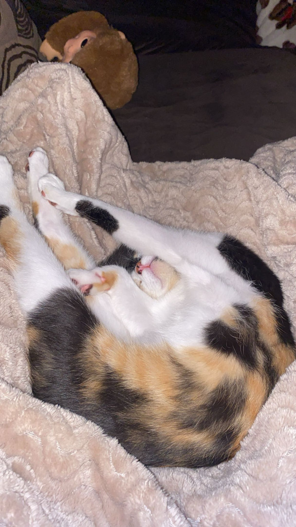 Trixie is an unbothered queen. But she can be a bit crazy. Actually maybe alot. She is always sleeping in an odd position and stealing food.
