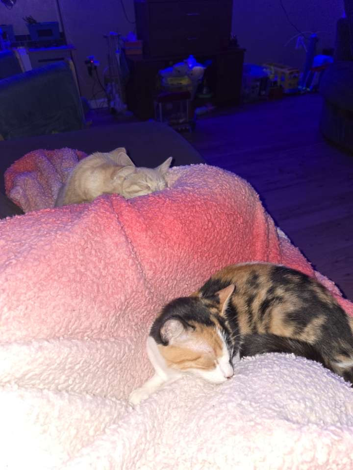 Trixie's most unique quality would probably have to be how she is able to sleep in any position, anywhere. Her favorite would be the baby car seat. Not only does she always sleep there, but she sleeps exactly like a little baby. Curled up and all. Or she loves to take nice naps on diaper boxes. Sprawled out with it slowly starting to sink in. Or maybe it's the recycle bin where there is wet, gross trash, which is outside... Another favorite is standing up. I don't know how she does it.