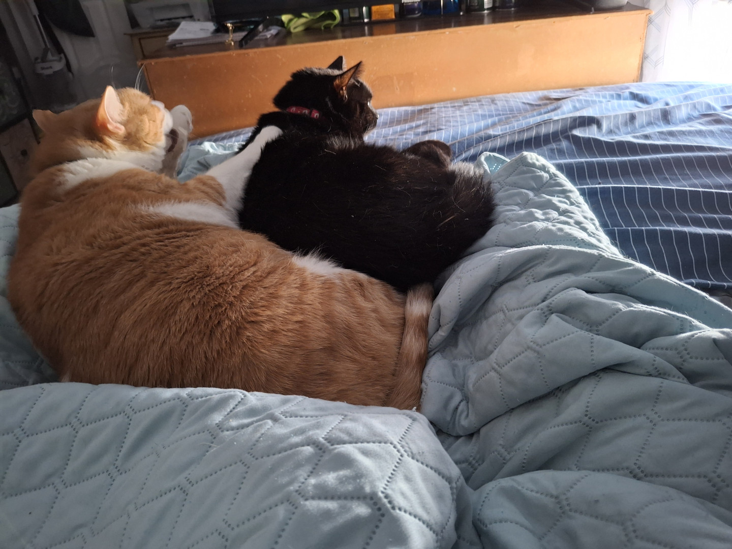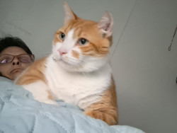 Trouble is the orange and white cat jade is the black my cats are my fur babies Trouble is Trouble lol jade is the shy one they are amazing