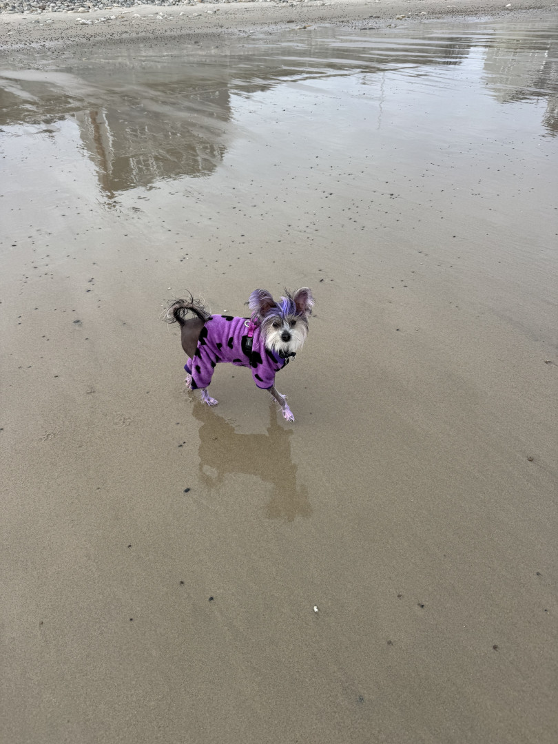 The party starts when Trumpette walks in. She loves to chase birds at the beach and run bunnies down in the backyard.