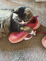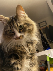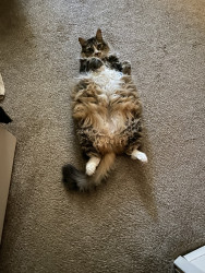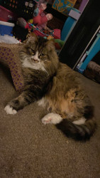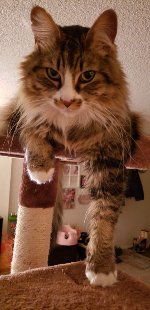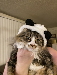 Tucker thinks he’s a dog and follows me around. He likes to hunt hair bands and sit in his Llama hut and hide so he can pounce on you.