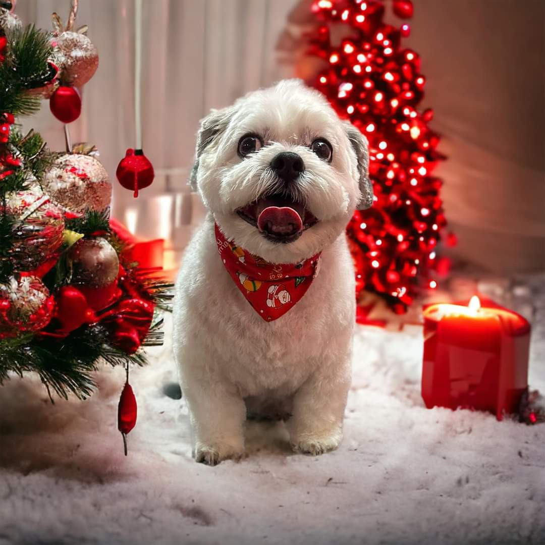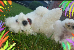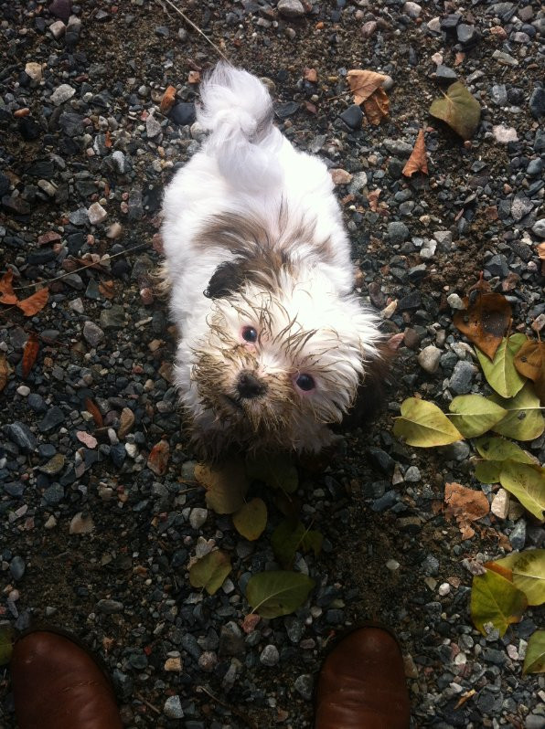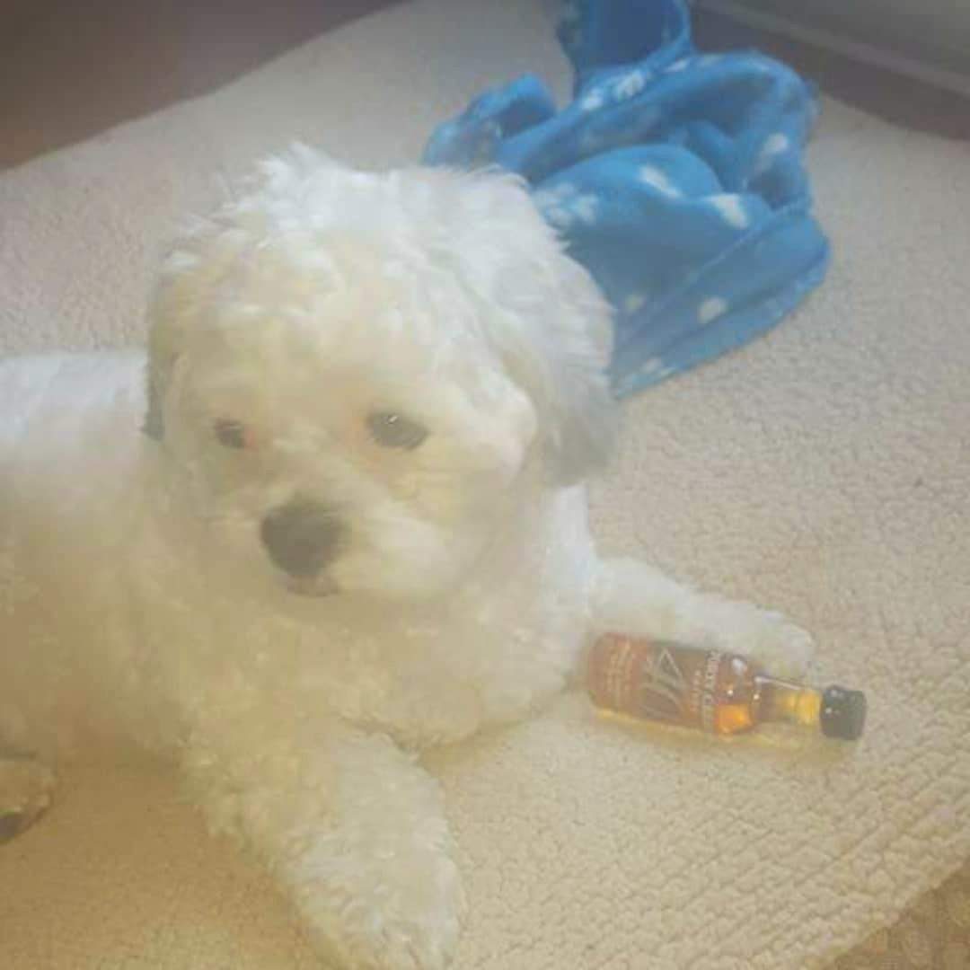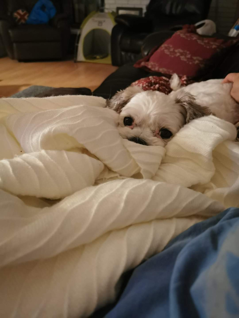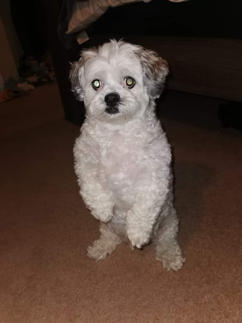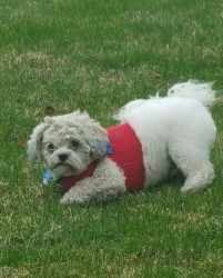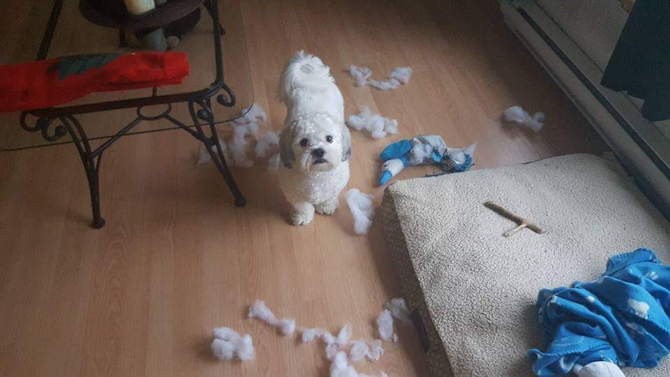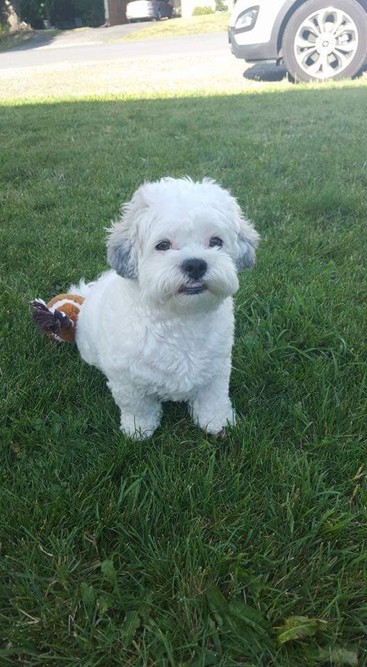 Tucker is an 11 year old shitzu poodle he weighs 20 pounds but believes hes 200 with a side of attitude. We work for him lol.
