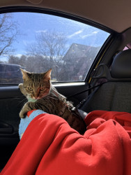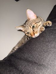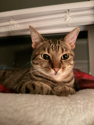 He is the most interesting cat ever. He loves cuddling under blankets, giving kisses, and doing back flips for his feather wand.