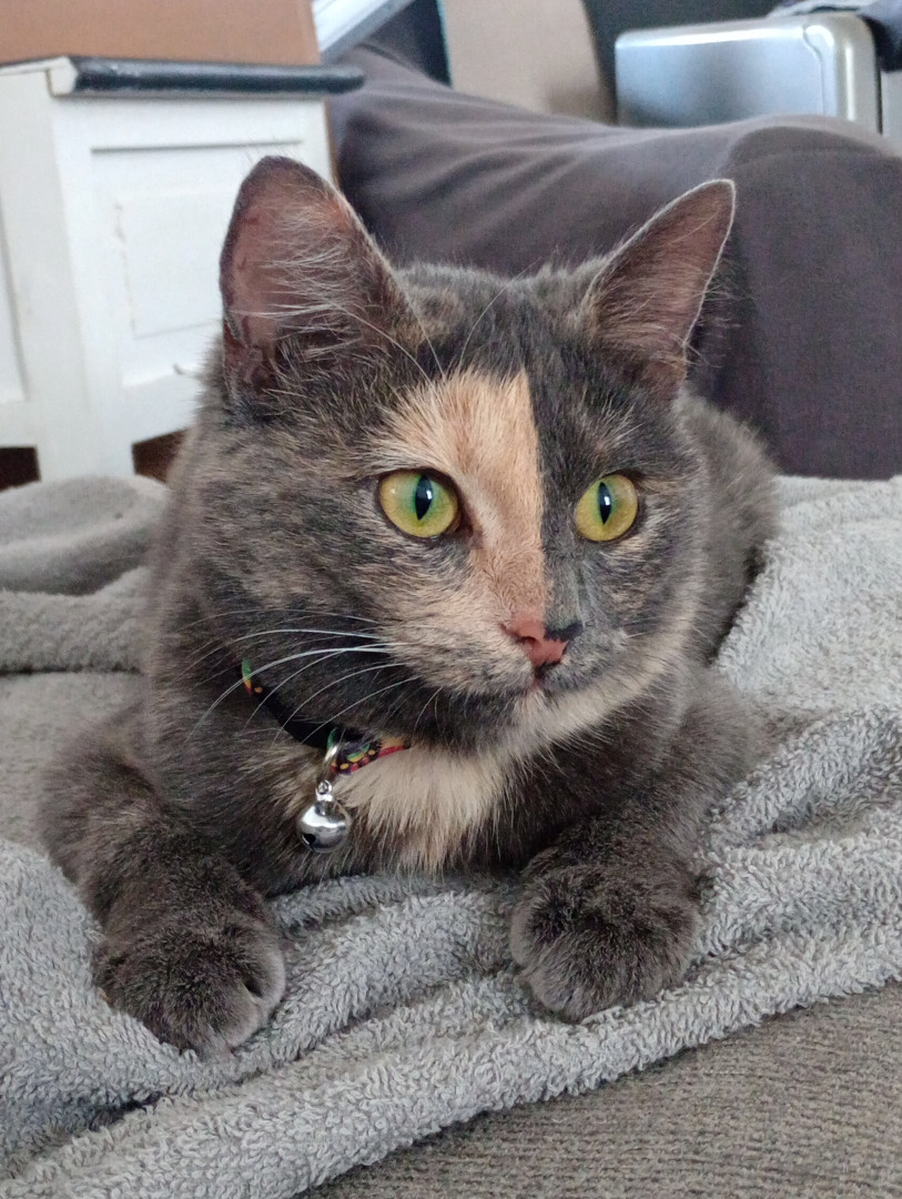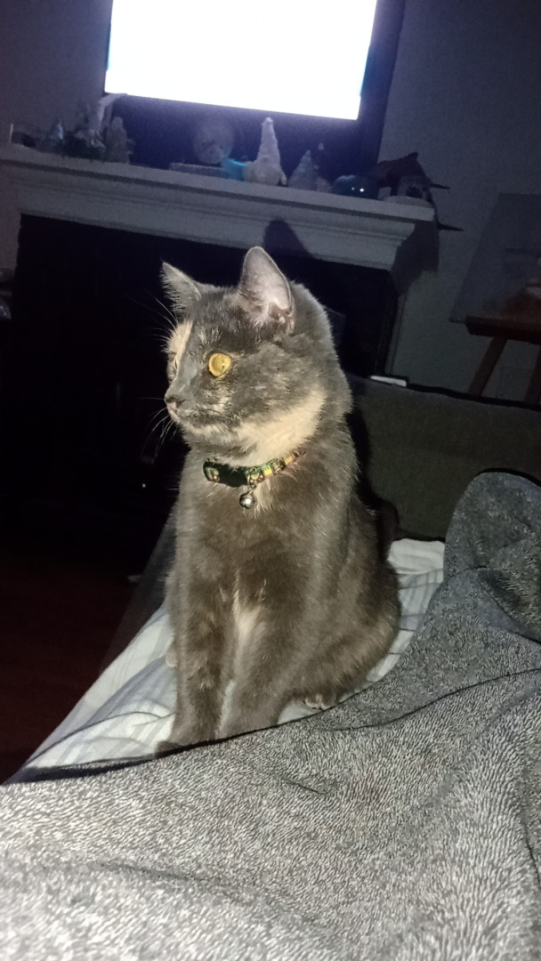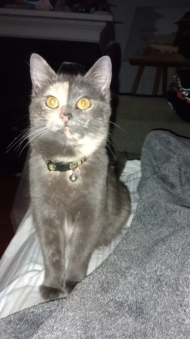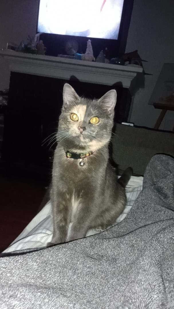 Tuna was a stray, we took her in. Tuna loves to play with paper from Amazon boxes, her stuffed fish toys, and loves to lay on you for naps.