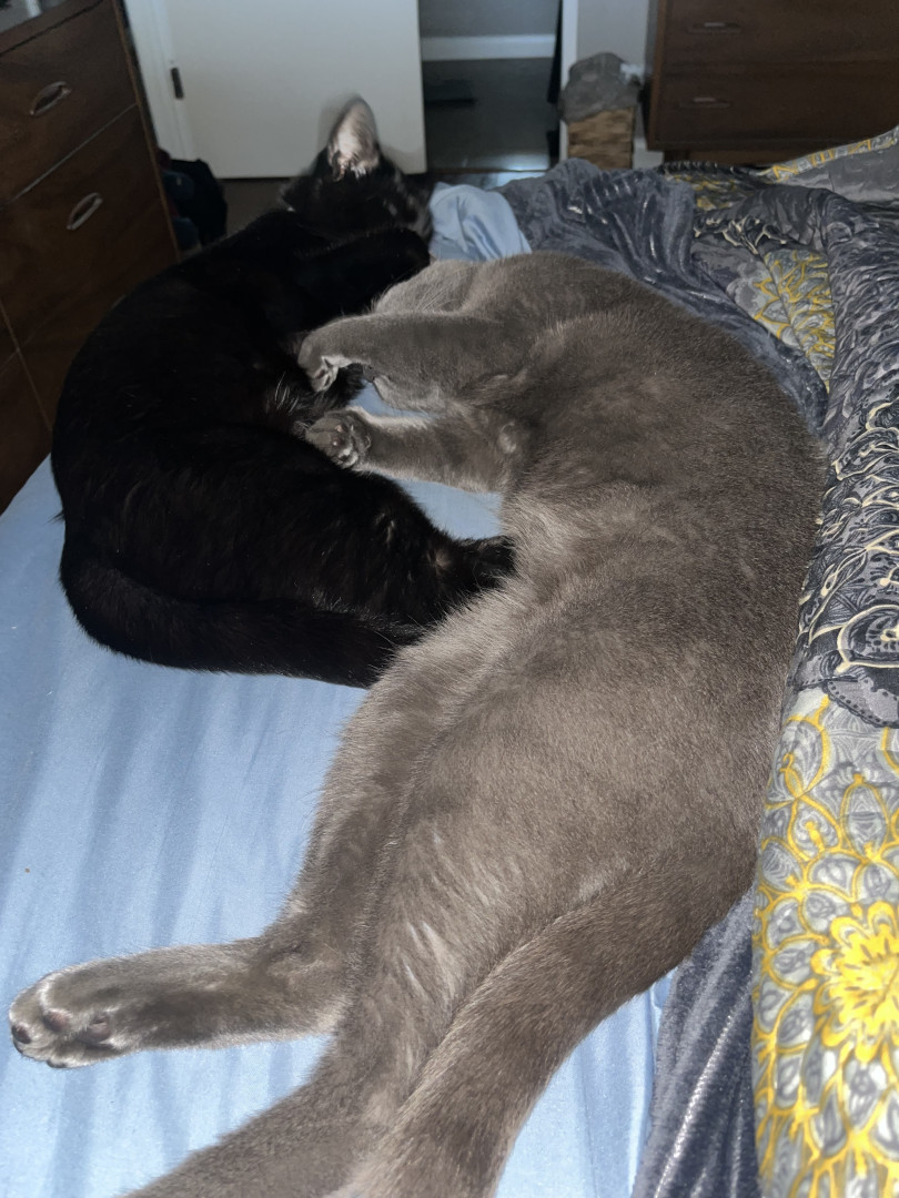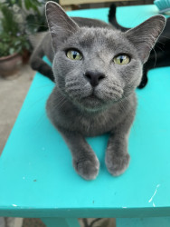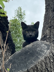 “Turbo” because he has a lot of energy, he’s vocal and purrs if you just talk to him. He’s an indoor/outdoor cat, but comes home every night