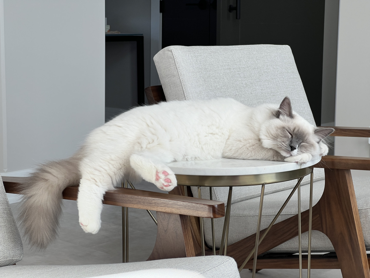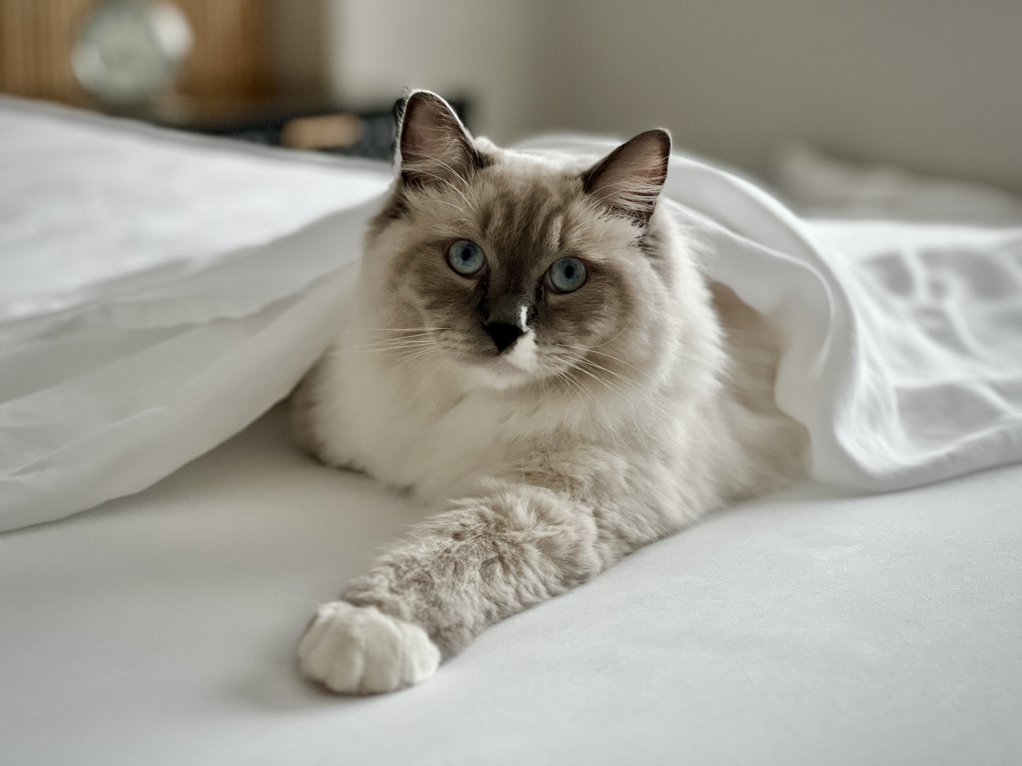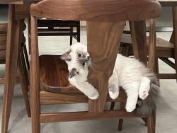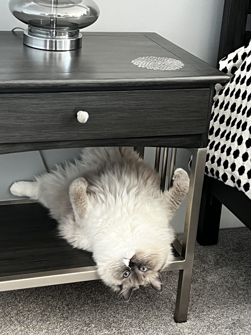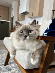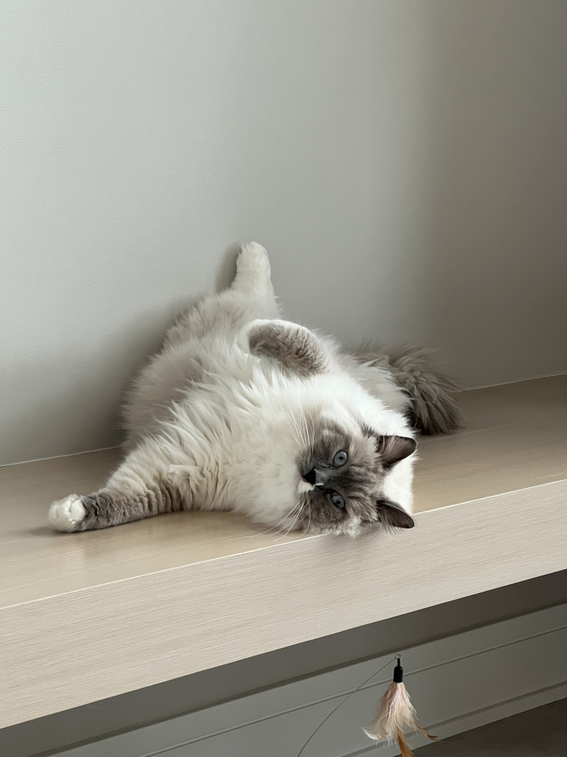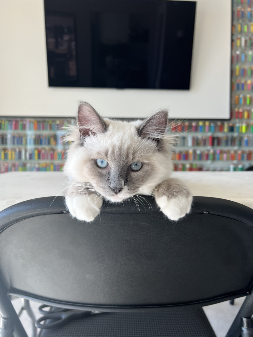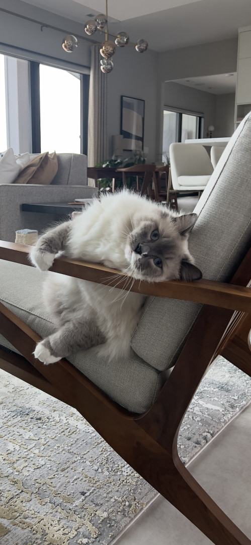 Turner’s most unique quality is his white mismark on his nose and mouth. It is a charming detail that gives his face a lot of character. The white patch isn’t perfectly centered, which adds a playful, slightly mischievous vibe to his otherwise regal look. It’s like his own little fingerprint—no other cat will have that exact pattern, which makes him instantly recognizable and extra photogenic. It’s the kind of mismark that turns a cute cat into a memorable one.