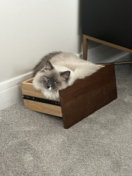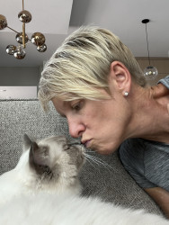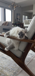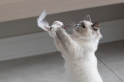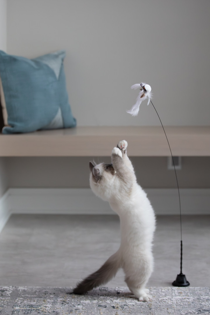 Turner’s favorite toy is the Leo’s Paw – Interactive Bird Simulation Cat Toy. Favorite treat is Delictables squeeze up hand held lickable treats in Chicken, Salmon or Tuna flavor. All meat, no vegetables for this guy. Serve him chicken and vegetables flavor and he will try cover it up like a litter box deposit.