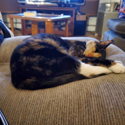 Twink's favorite play item BY FAR is her motion-activated feather balls! These unpredictable toys keep her hunting prey all day long by activating once she touches them. Her treats are hairball-control to support her gut through long grooming sessions- her favorite activity!