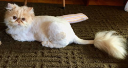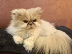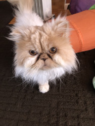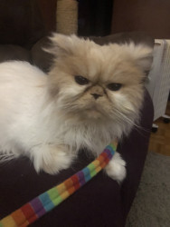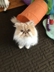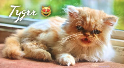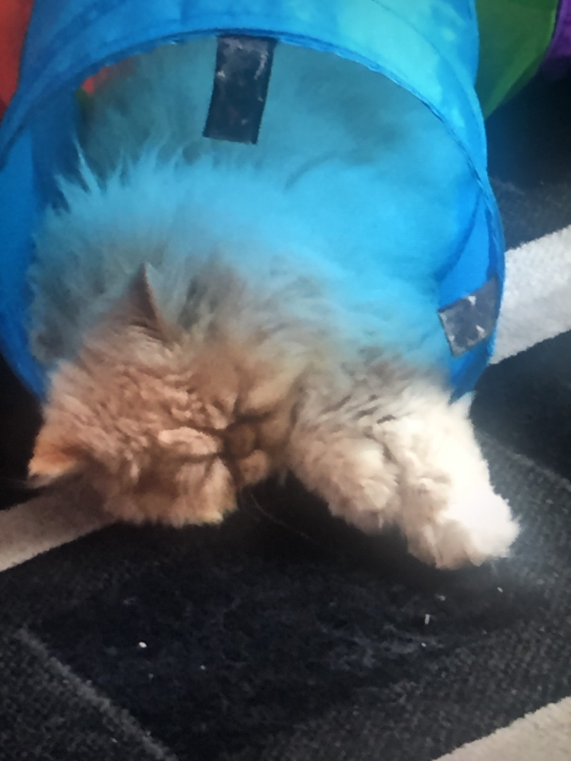 Tygrr is a Flame-Point Himalayan cat. He is 15 years old. He loves to play in his tunnel and toys. He can vibrate the floor with his purring