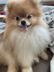 Ubu has an amazing story - a literal miracle happened to get him to me. Sadly I don’t have enough characters to write it here. And he was right on time, with a beloved family dog passing away weeks after his arrival. They got to meet once and the pictures are so sweet. Ubu should be America’s Favorite Pet because he already is! About once a month since I’ve had him, a stranger asks me if they can take pictures of him. He’s been called “The Pommiest Pomeranian Ever” and “The Cutest On Earth!”