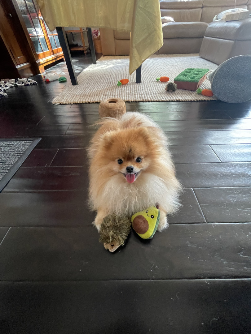 Learn MoreHe’s tiny and loves round things he can grip. Favorite toys include his hedgehogs, his small-sized tennis balls, and an avocado squeaky toy from a guacamole bowl set. That one’s my favorite. He also loves string cheese!