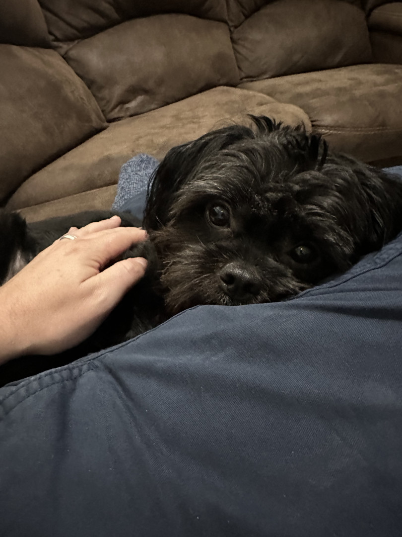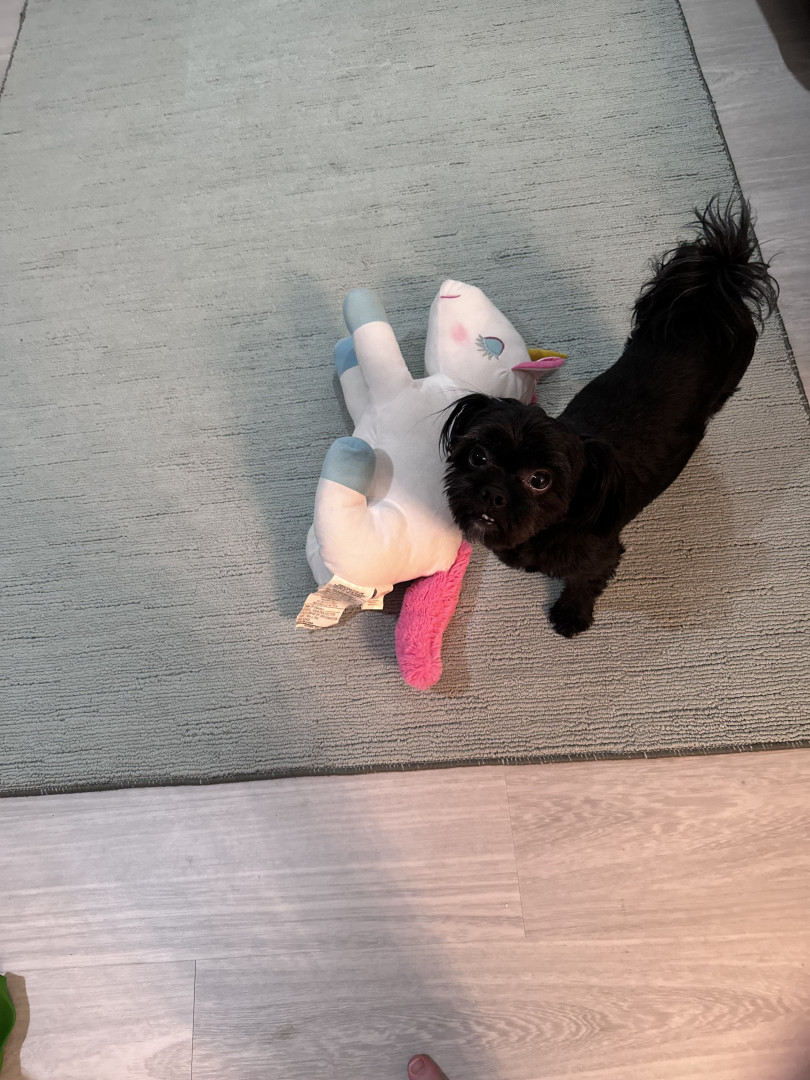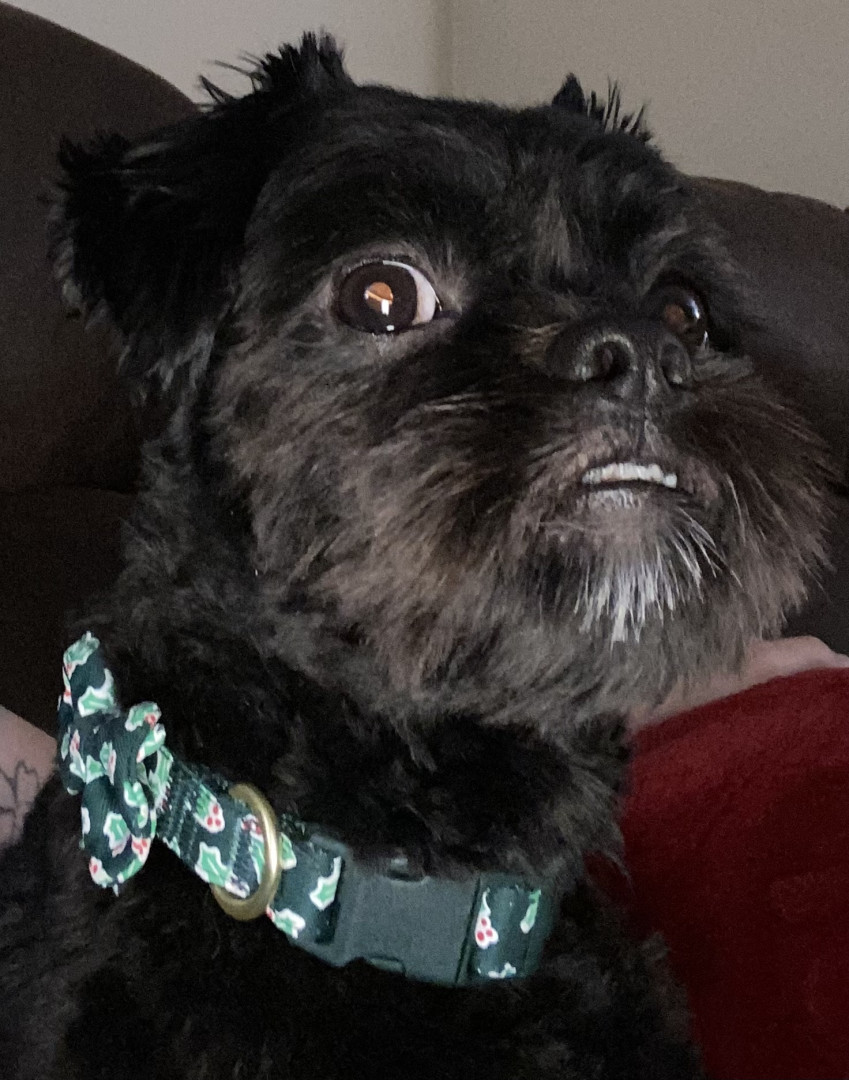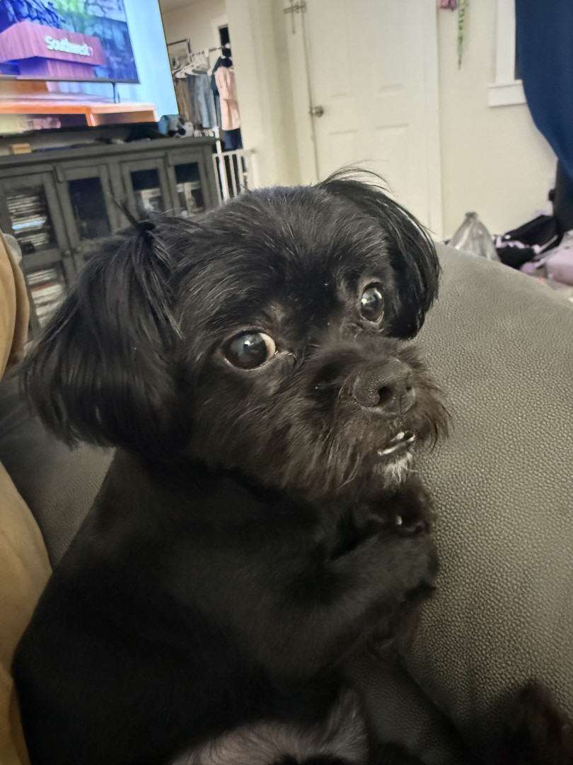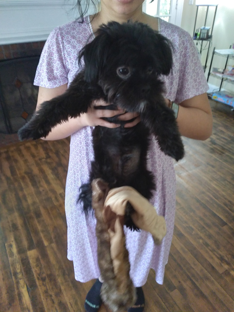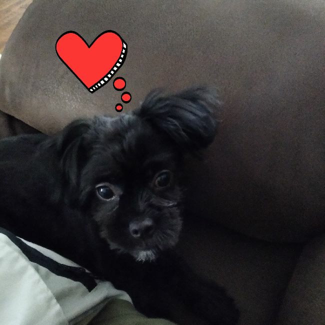 Mr. Bark Vader a mix of Shih-Tzu and Papilliin black as the night with two sparkling eyes that scream mischief and love all at the same time