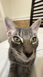 Vader has a lot of energy, he’s always on the move to find the next thing to be curious about, he has a very unique pattern for a domestic short hair grey cat! & also can’t forget he is very photogenic he enjoys getting his picture taken. Always looking at the camera ready for it to go click!