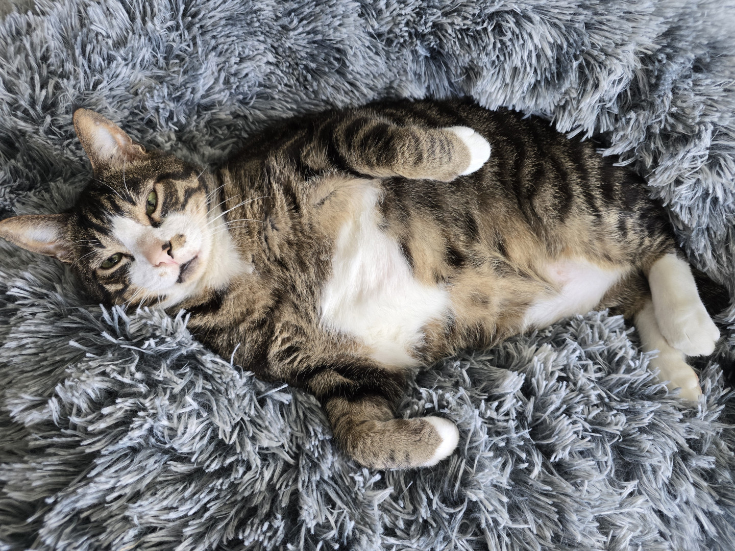 He is 14 years old, very friendly and gentle. Likes to eat and chase his toy mouse, Enjoys sunbathing and looking outside the window.