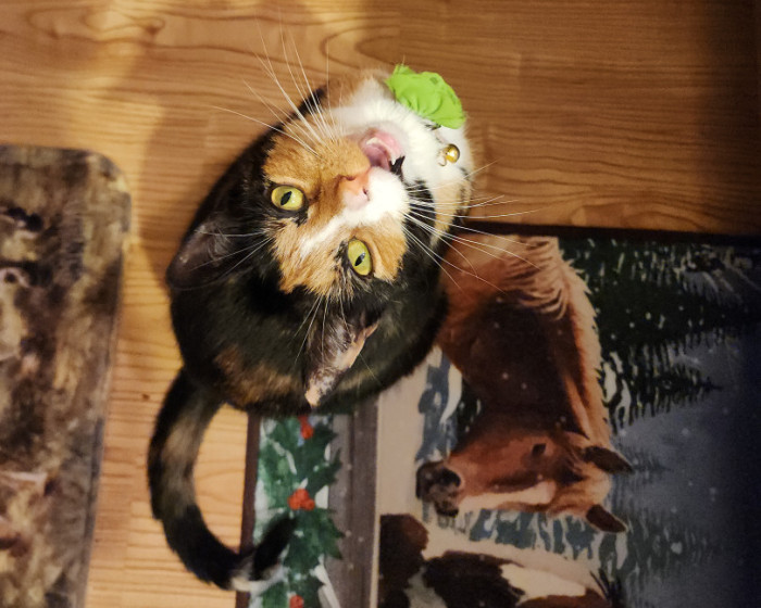 Velvet should be America's favorite pet because she's so unique! It looks like she's wearing a mask! She also really wishes to help local shelters with being overrun by kittens by sponsoring them with a home for the pawlidays!