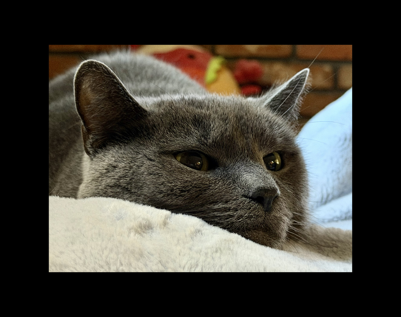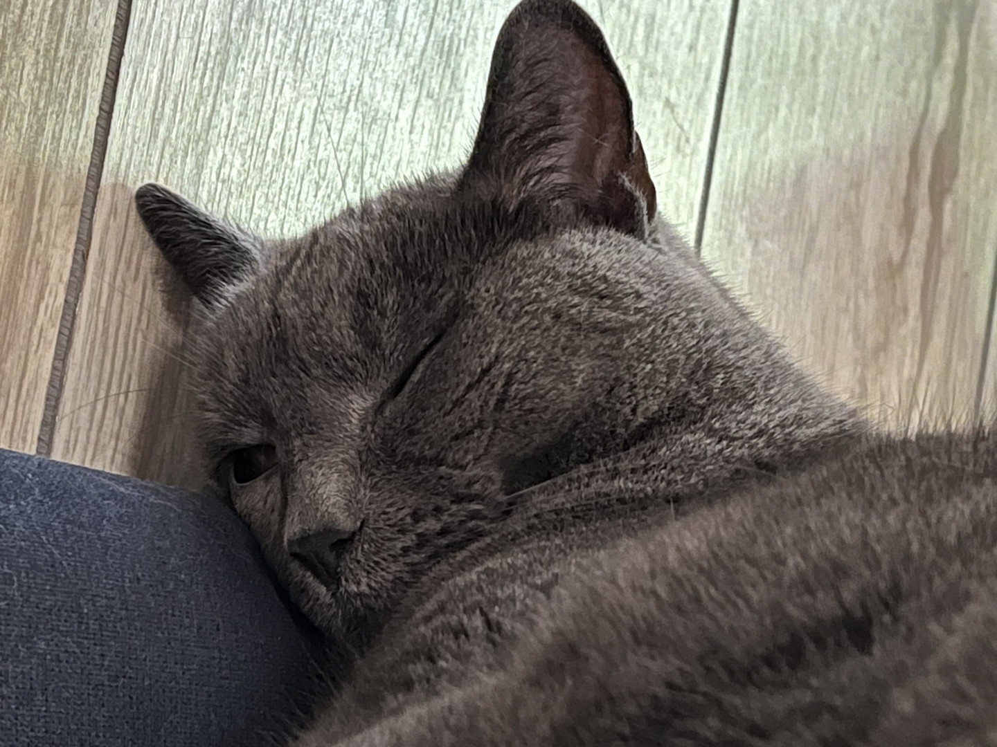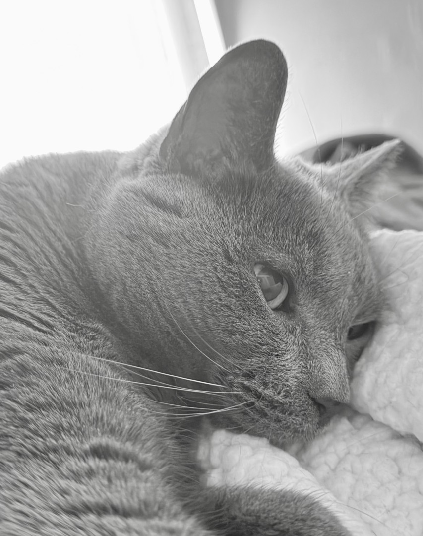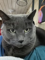 Victor is a ten year old Russian Blue who we adopted from a local shelter at four months old. He is my security guard and love bug.