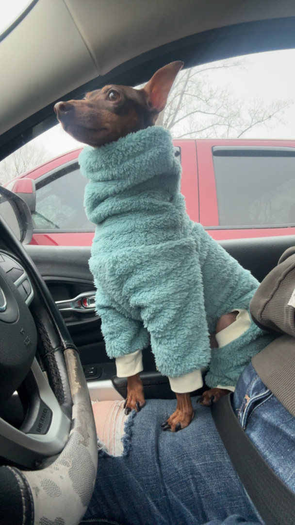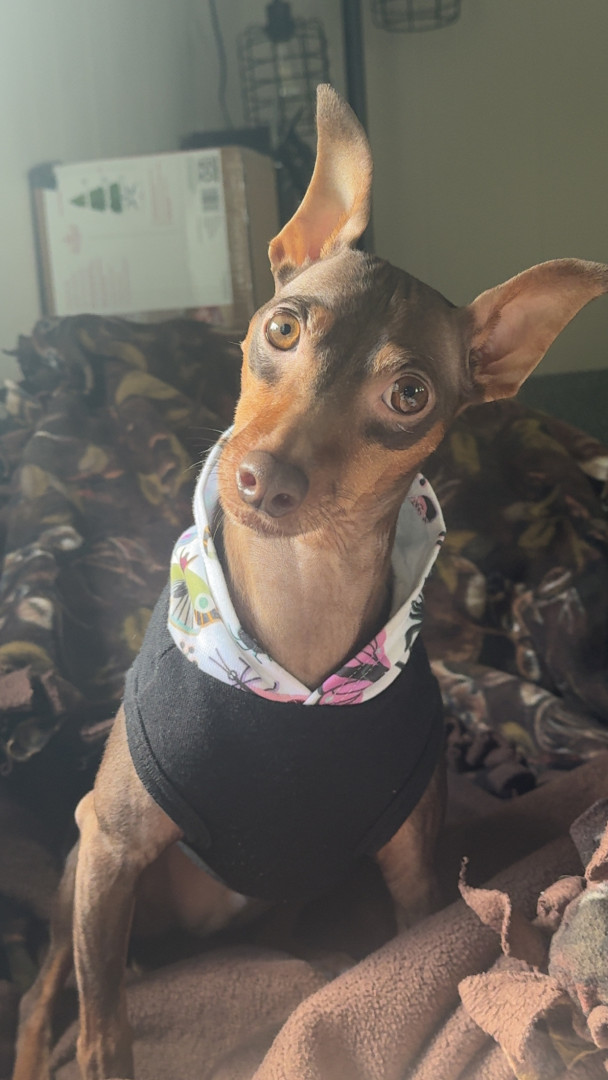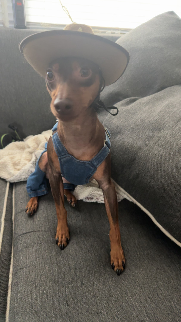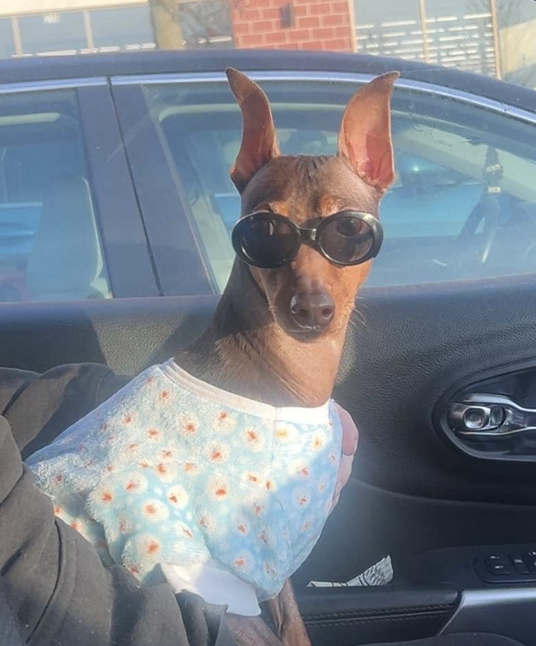 Because Vinny is pure joy in dog form. He’s a cuddly, car ride loving, shirt wearing little fashionista with an unforgettable personality. Plus, Min Pins deserve the spotlight, and Vinny is the perfect ambassador. Small dog, massive charm, undeniable star power.