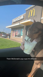 Vinny refuses normal dog toys like a true icon. He’s obsessed with catnip mouse toys and loses his mind for McDonald’s pup cups.