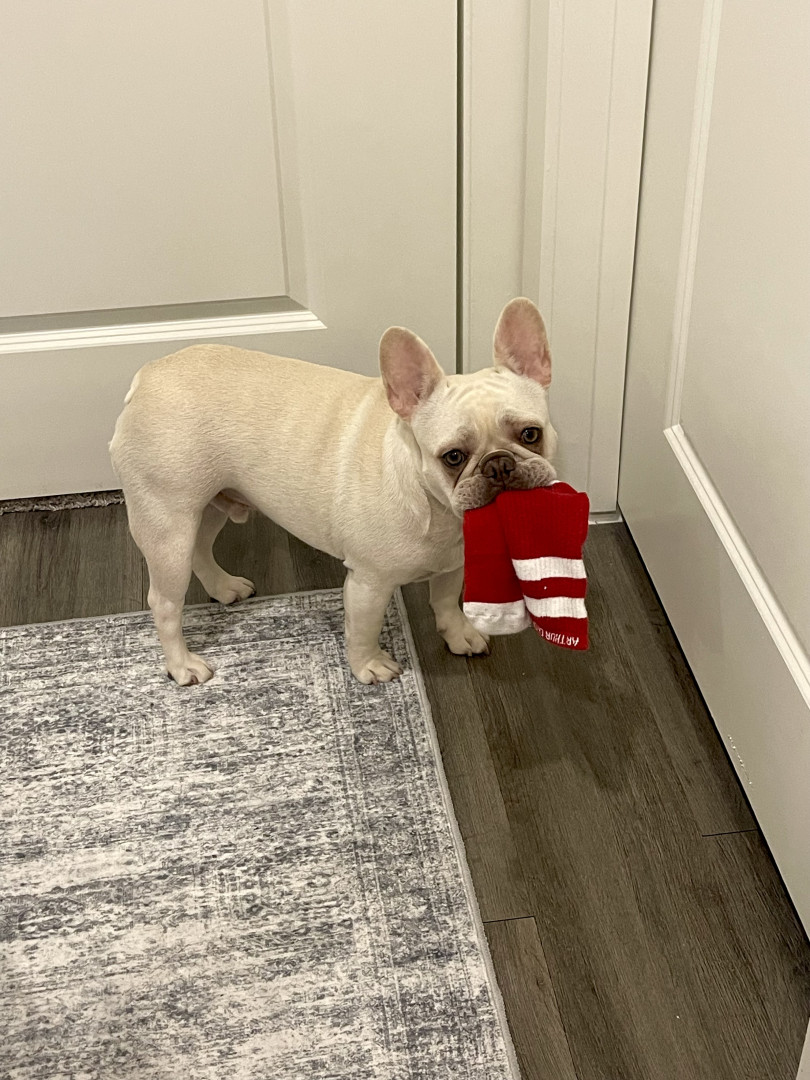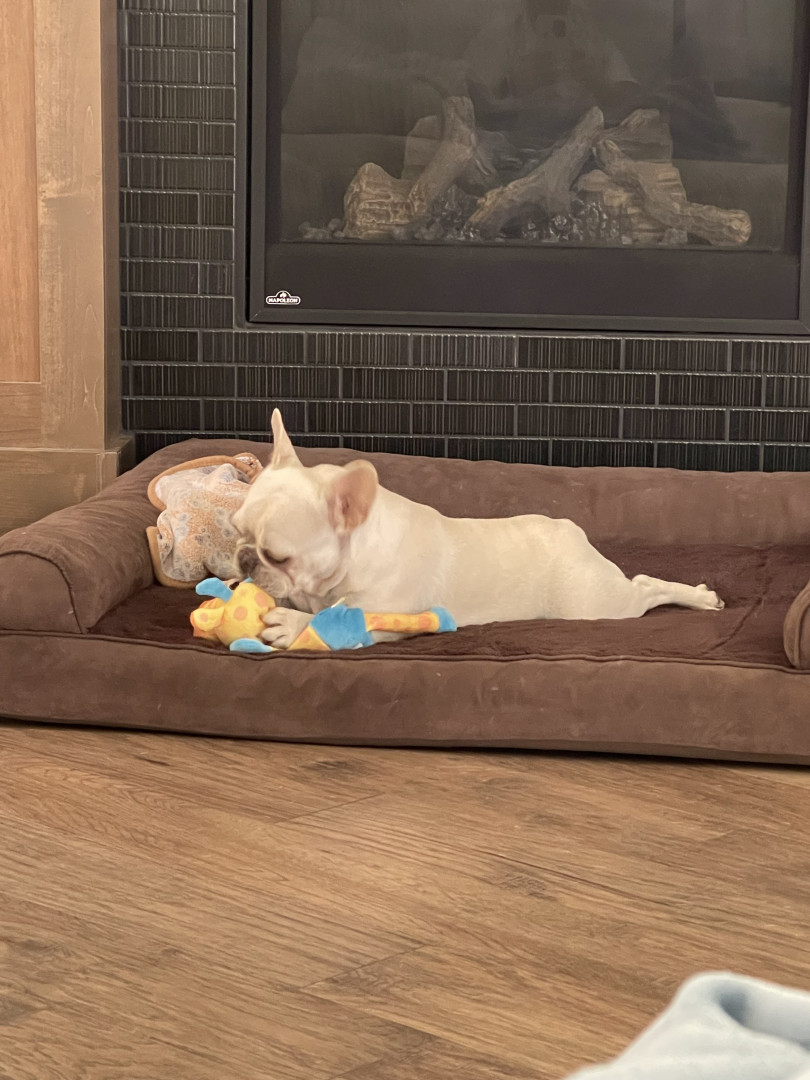 Learn MoreAnything squeaky, his benebone PB on on a lick mat